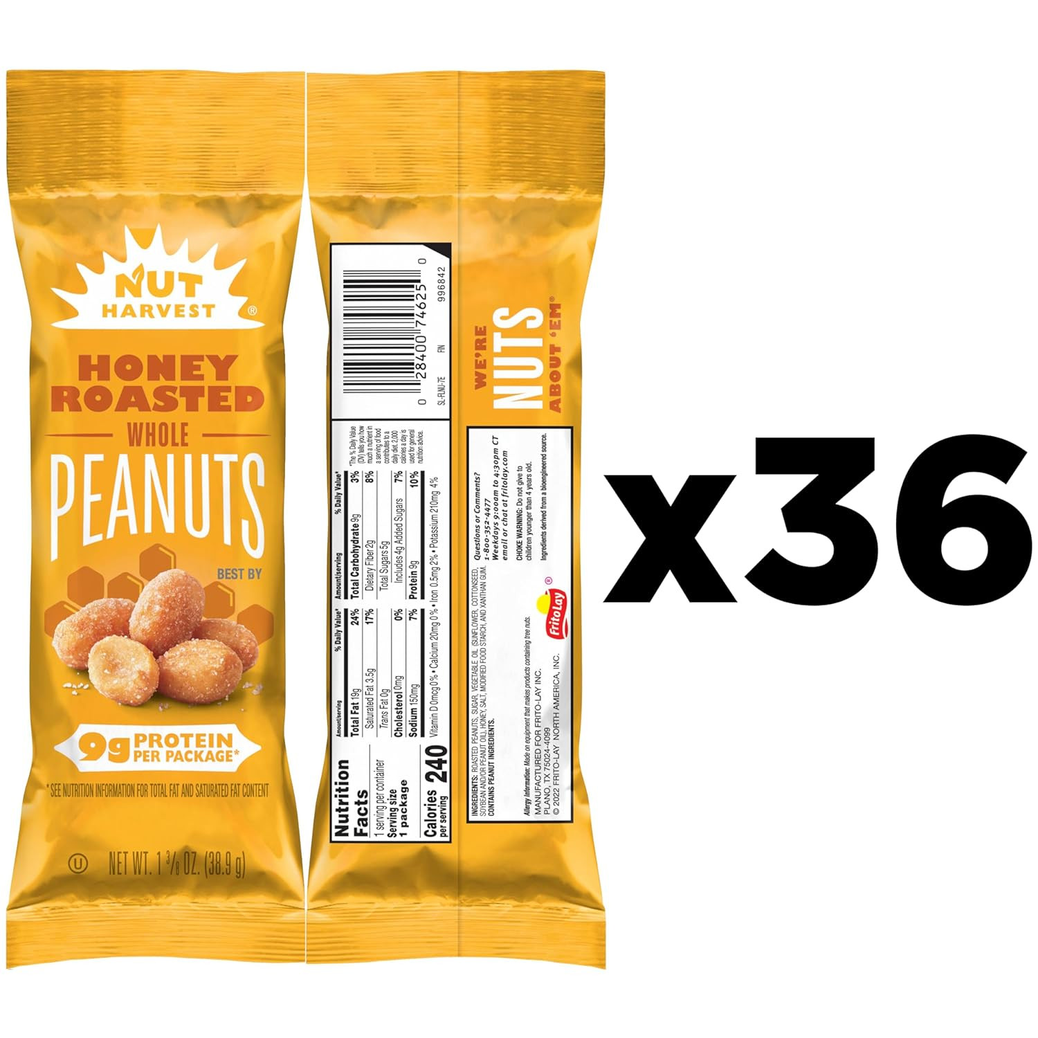 , Honey Roasted Peanuts,1.375 Oz Bag, 36 Pack