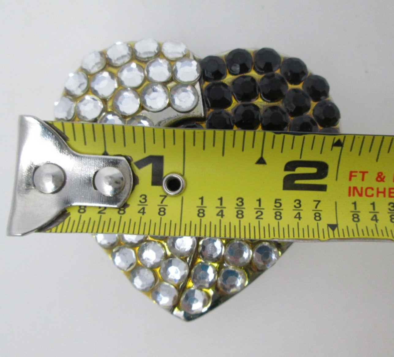 Heart Belt Buckle Clear and Black Rhinestone Womens