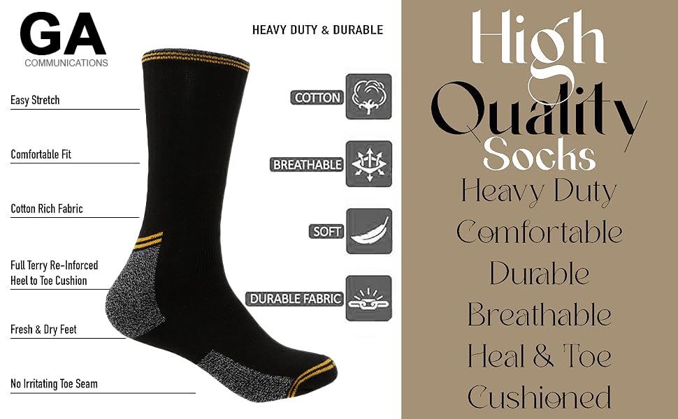 3,6,12 Pairs Mens Work Socks Reinforced Workwear Cushion Sole Boot Socks UK 6-11
