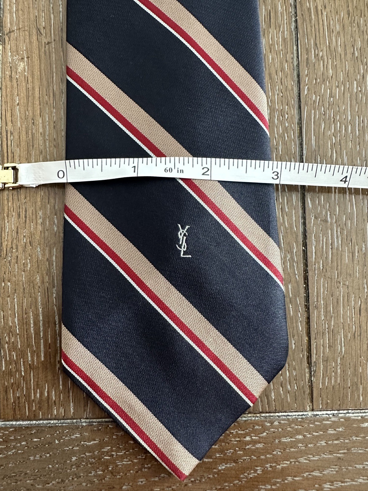 как выглядит VTG YSL Yves Saint Laurent Necktie Navy Red Stripes GORGEOUS фото