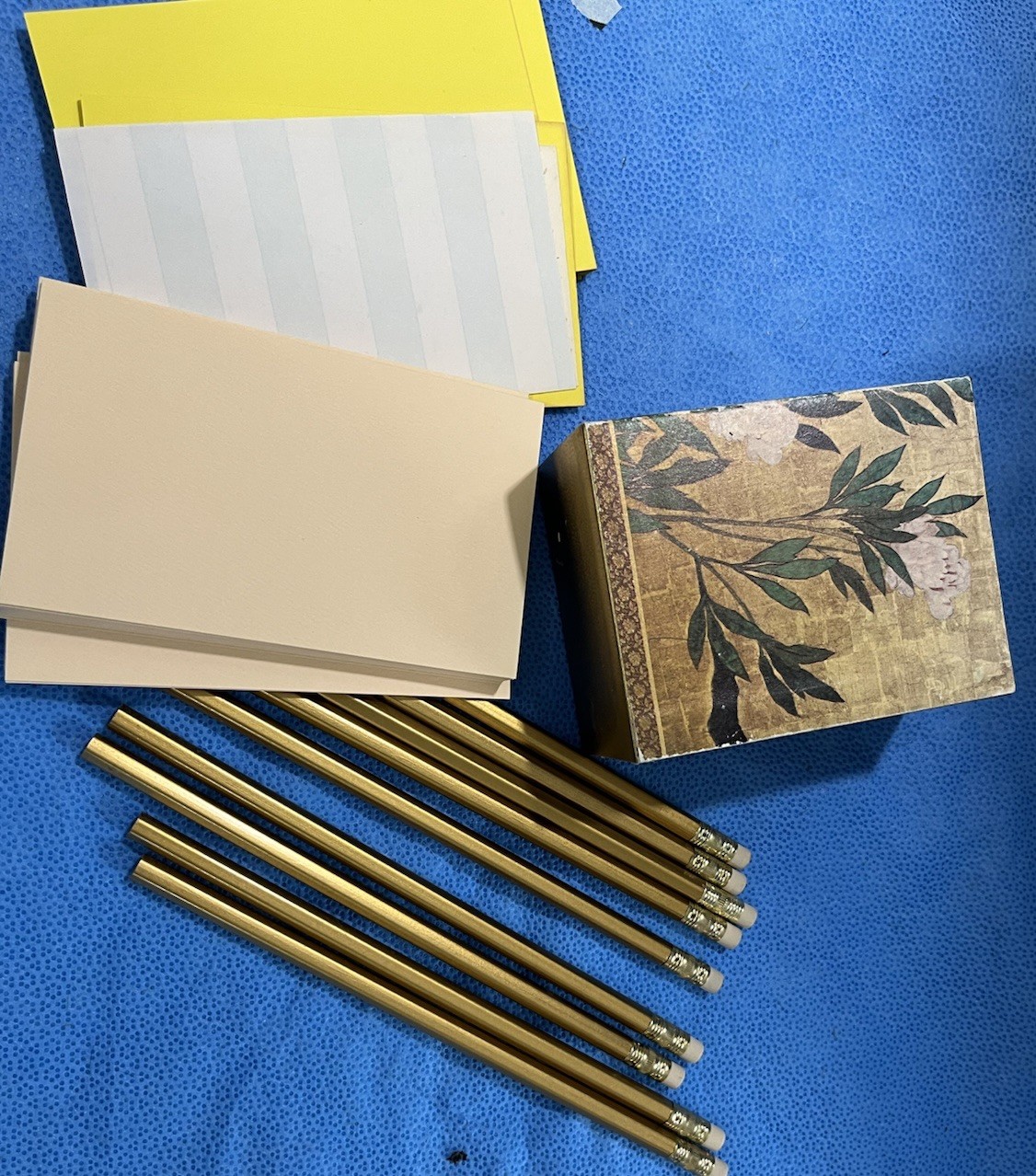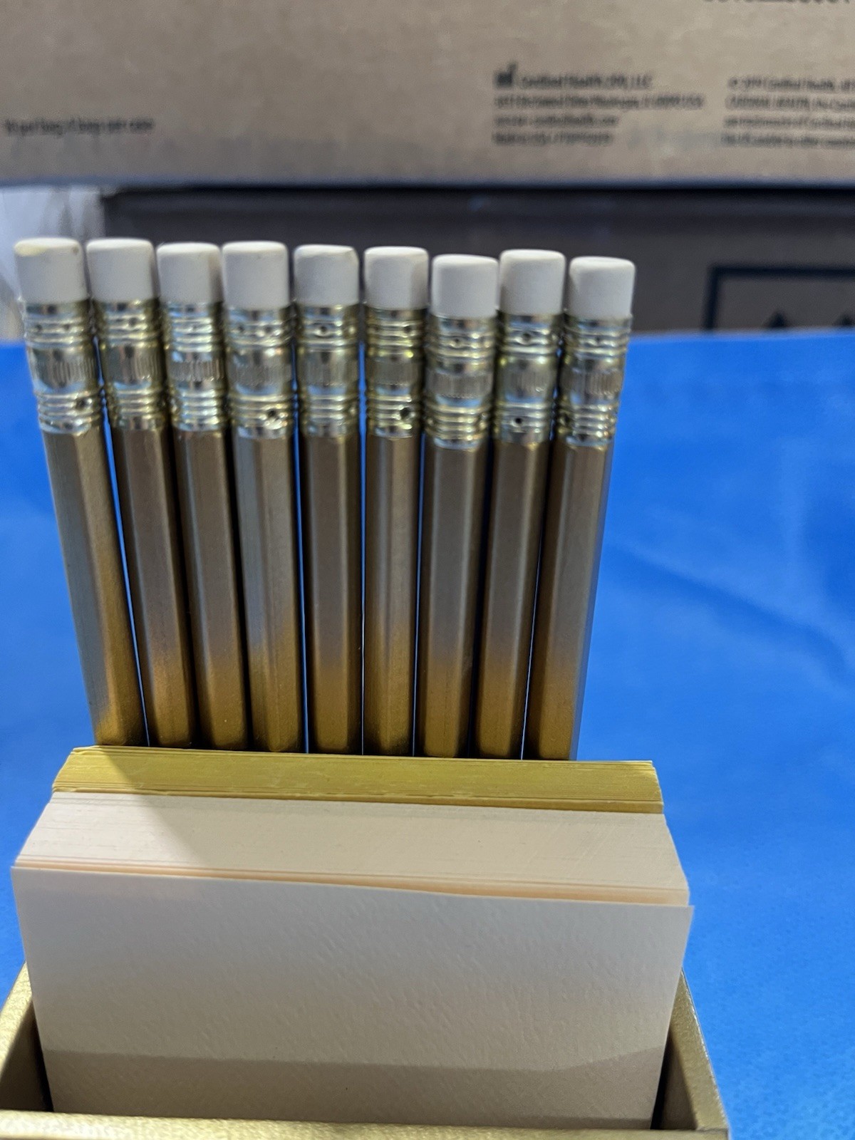 Collectible decorative desk organizer w Gold Pencils Notepaper Stationary Set