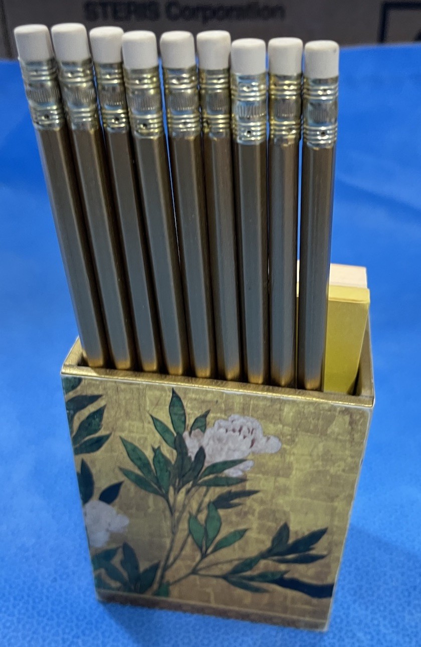• Collectible decorative desk organizer w Gold Pencils Notepaper Stationary Set