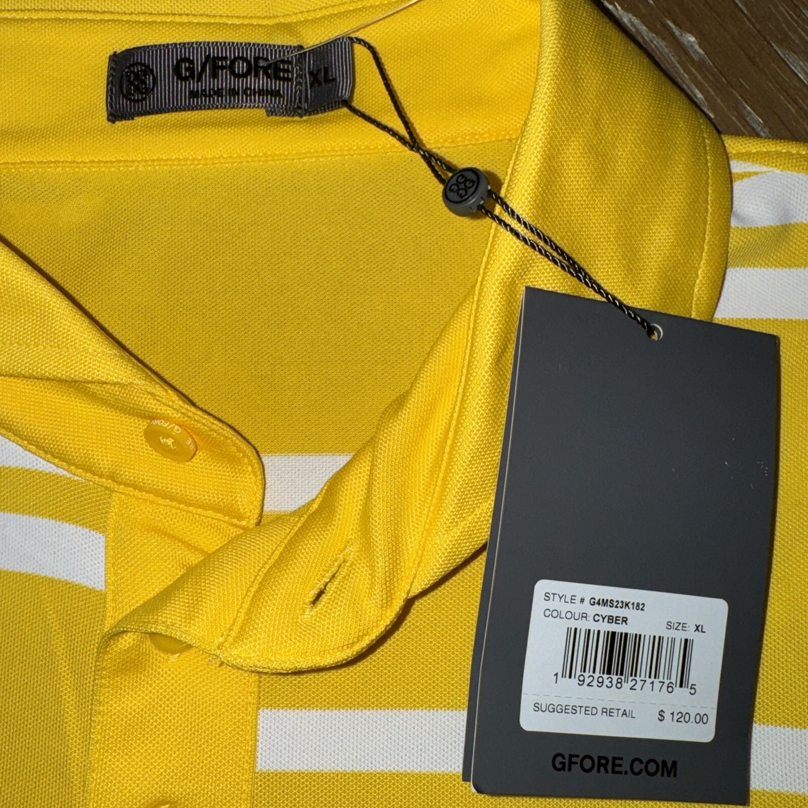 как выглядит NEW G/FORE Mens LARGE Off Stripe Performance Polo Cyber QuickDry Stretch 120 фото