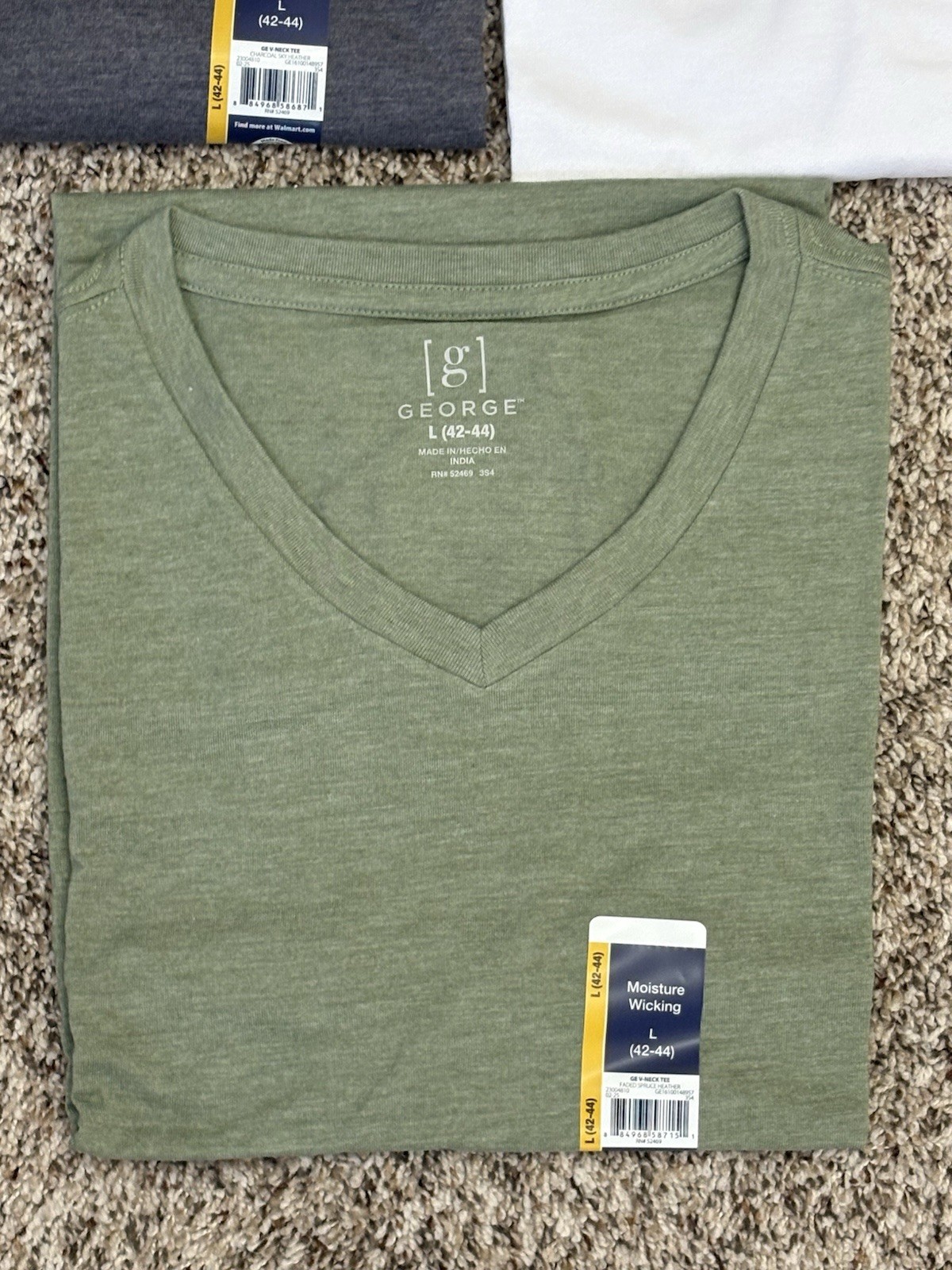 New George 3-PACK Men s V-Neck T-shirt Tee Moisture Wicking Sz 42-44 LARGE G2