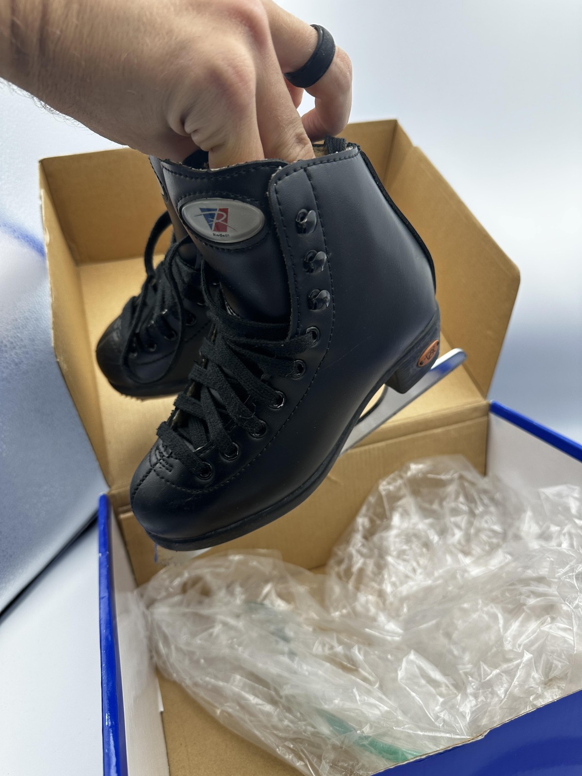как выглядит Riedell GR4 Youth Kids Figure Ice Skates Size 12 Medium Black Stainless Blades фото