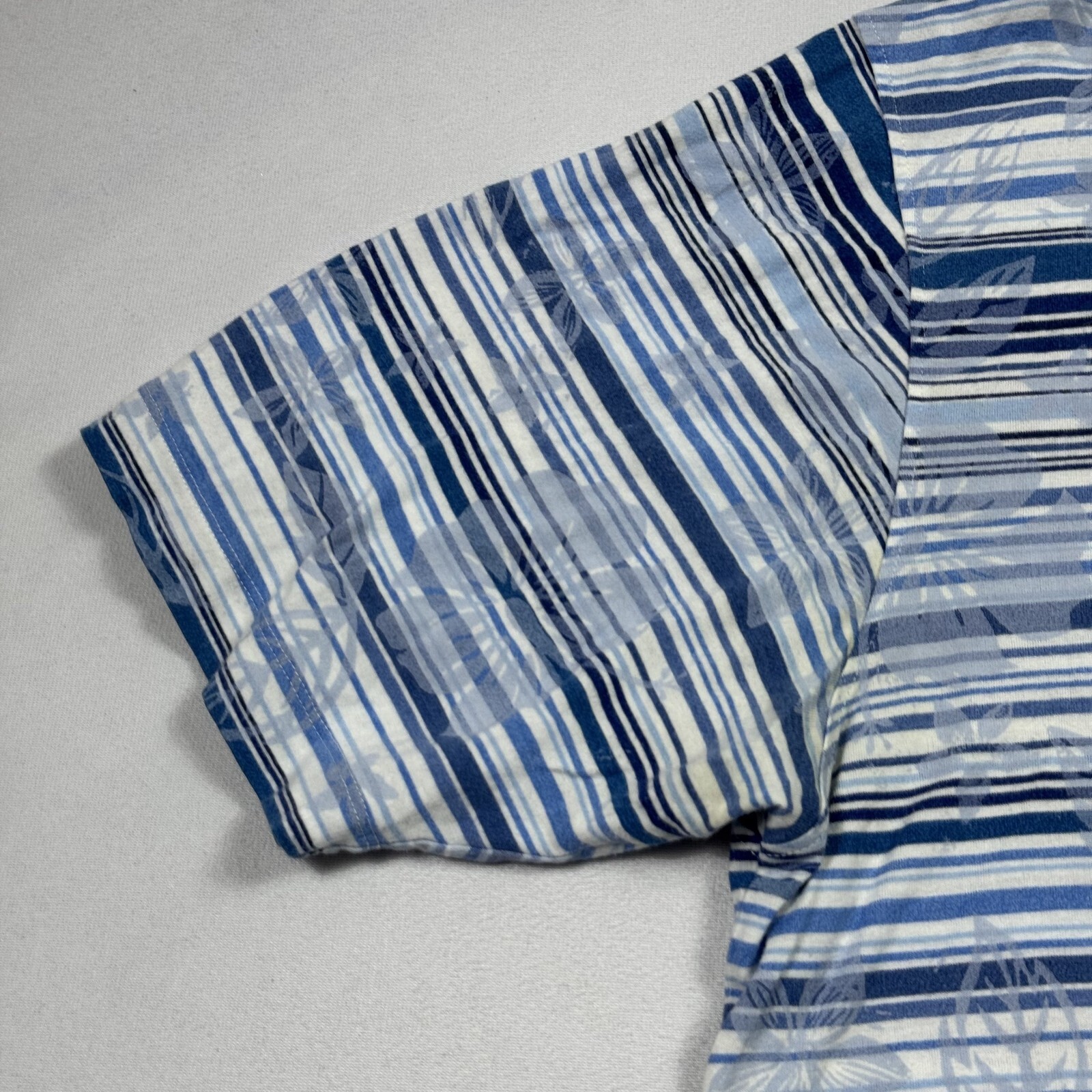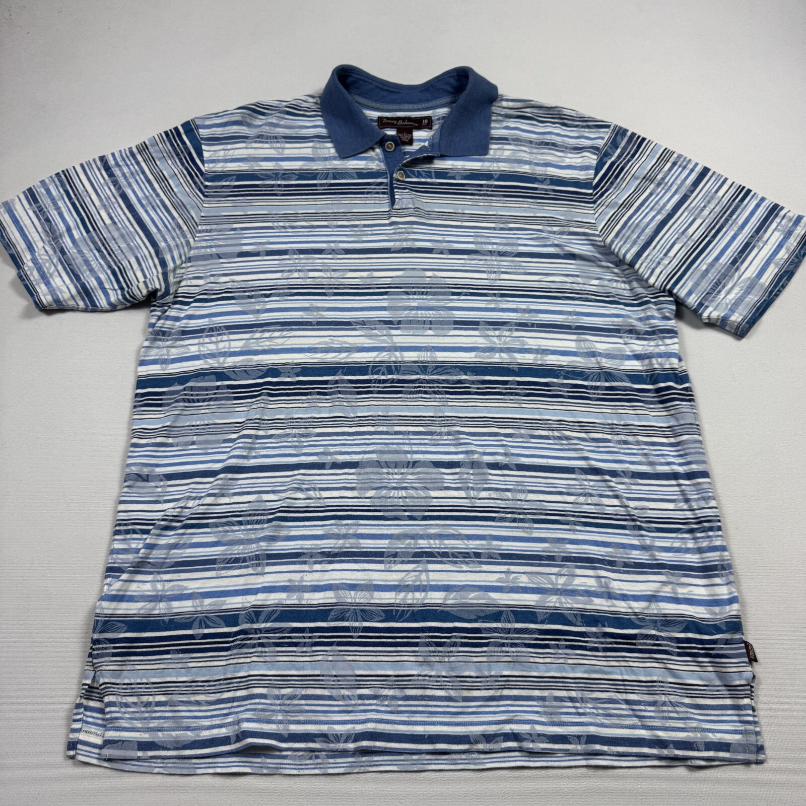 Tommy Bahama Golf Men's Polo Shirt Floral Striped Tencel Cotton Blue Large
