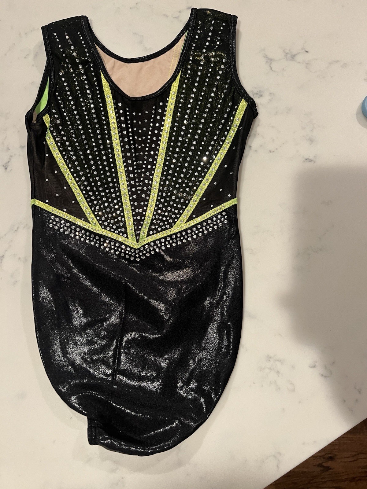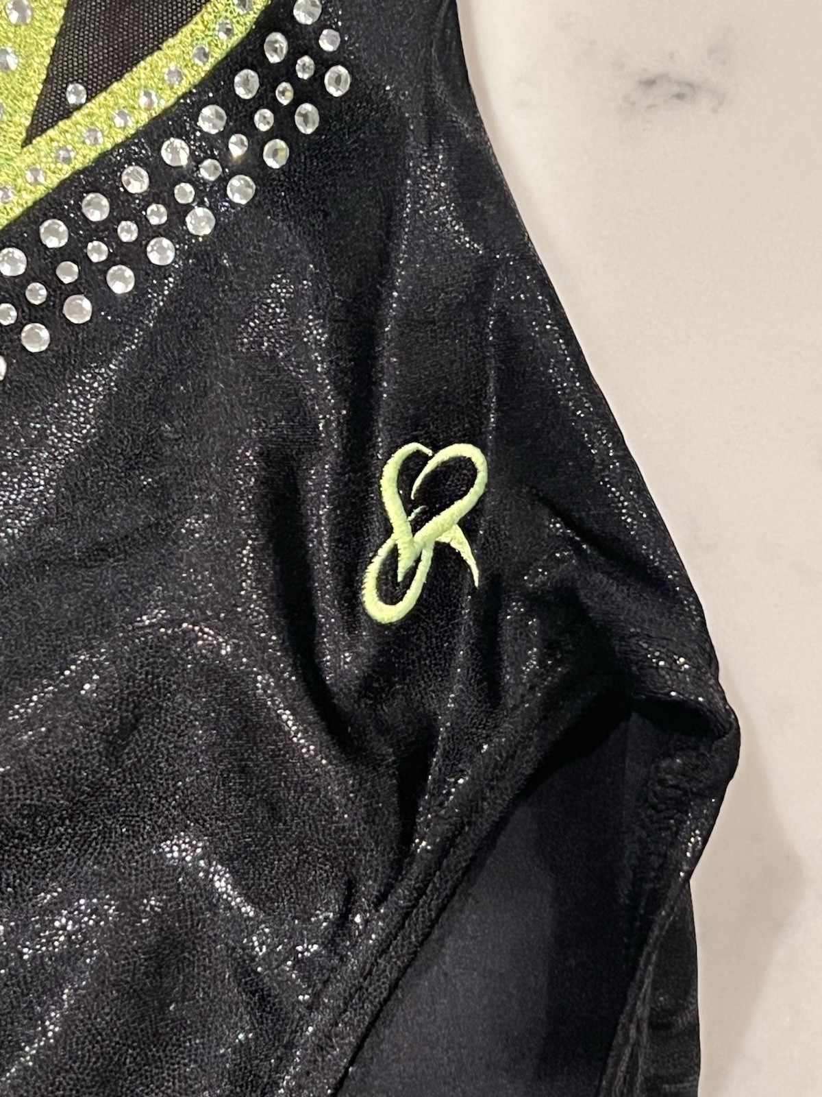 Gymnastics LEOTARD Competition RHINESTONE BLING Lime Green Black Shimmer AS