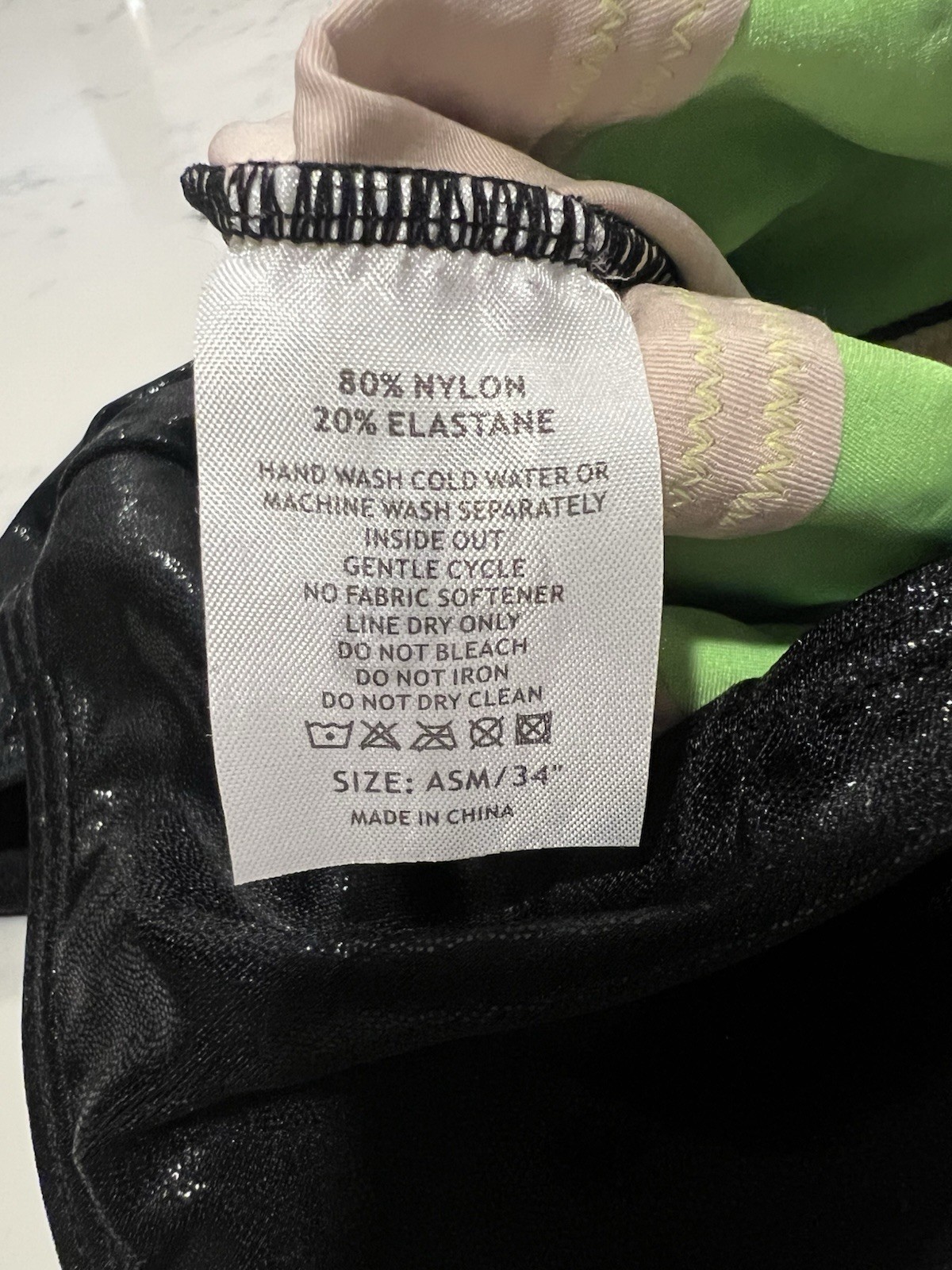 как выглядит Gymnastics LEOTARD Competition RHINESTONE BLING Lime Green Black Shimmer AS фото