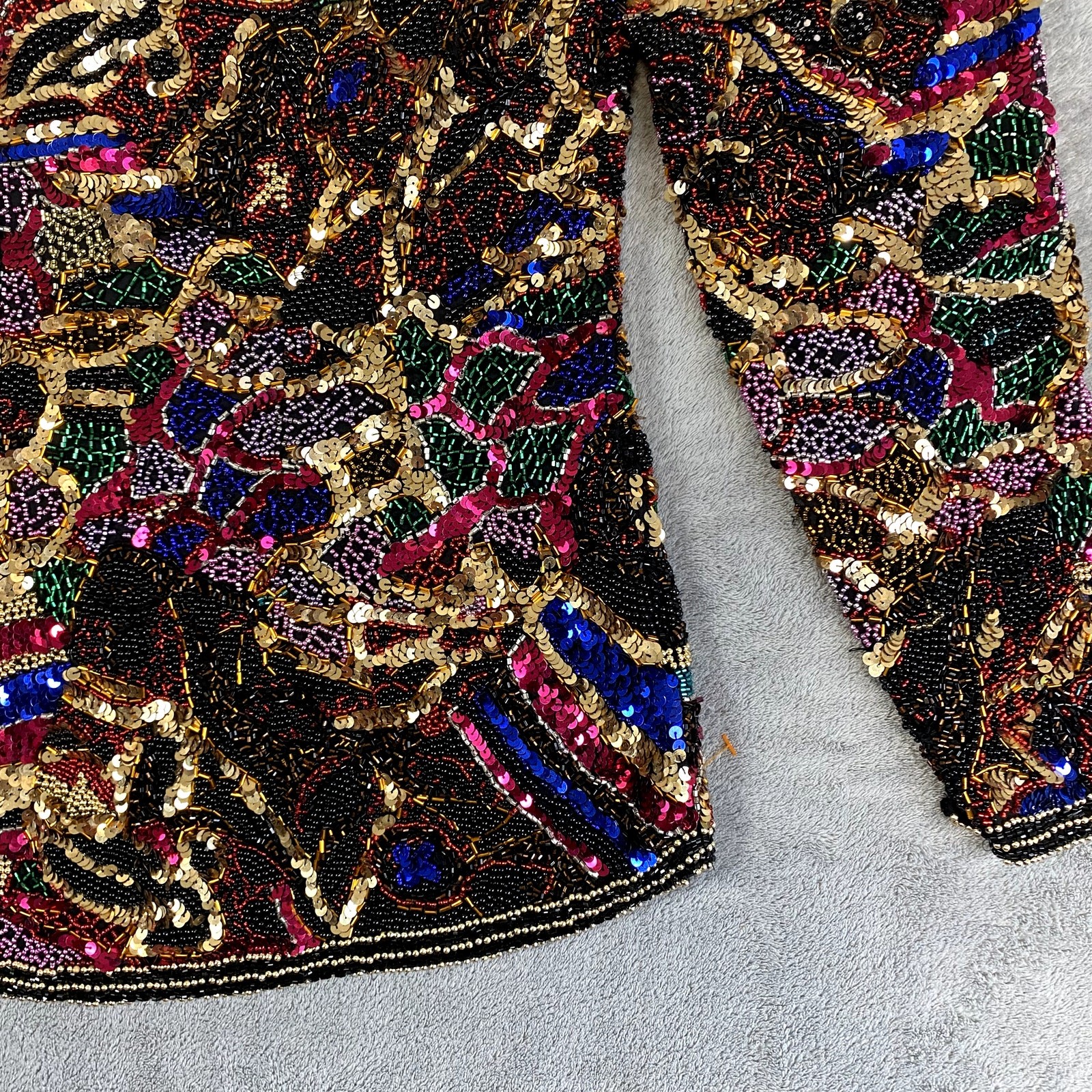 как выглядит VTG Black Tie Sequin Beaded Silk Top Womens M Long Sleeve Party Evening Glam фото