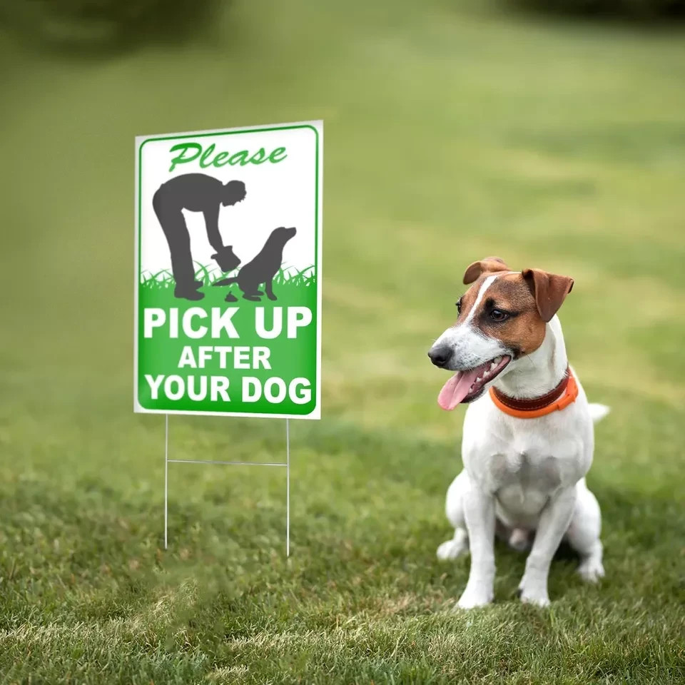 2 PC Please Pick up after Your Dog Sign - 8X12 Double Sided Coroplast No Dog