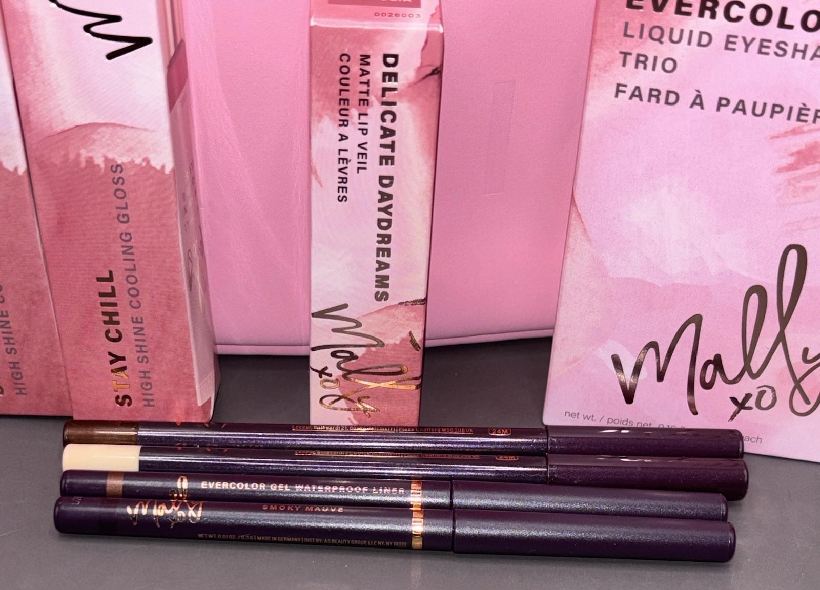 Mally Beauty Cosmetic Bag 10 PCS Set Gift New In Box Liquid Eyeshadow Liner Lip