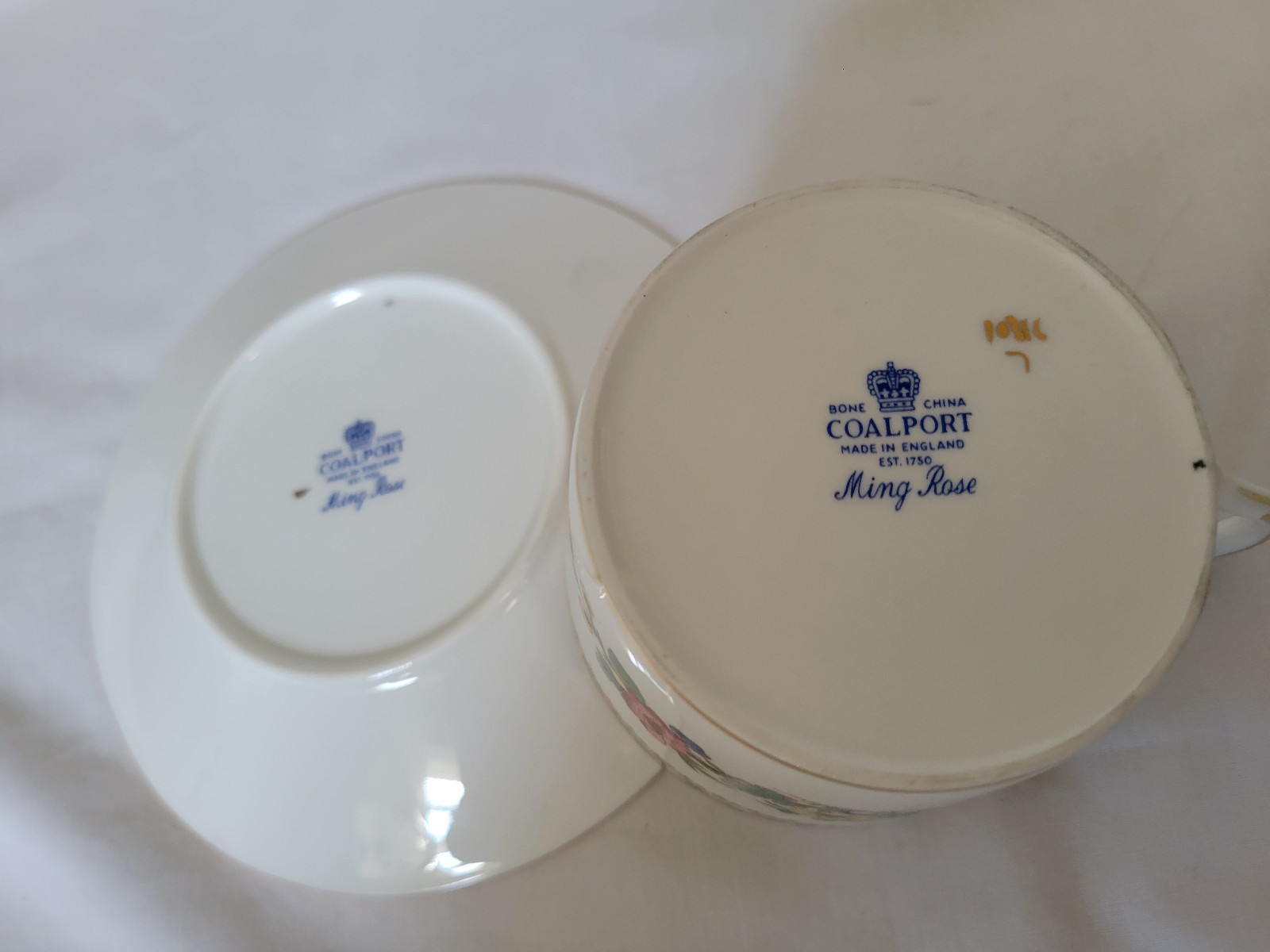как выглядит COALPORT English Bone China Ming Rose Flat Teacup Saucer Set EXC фото