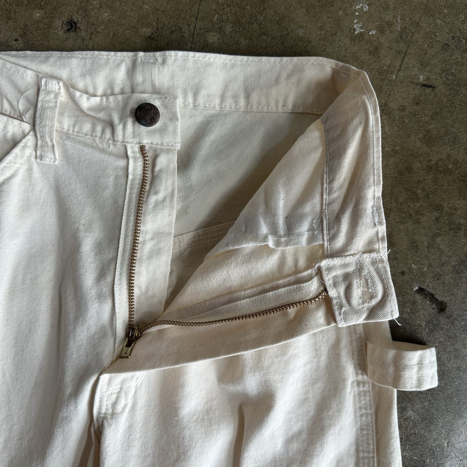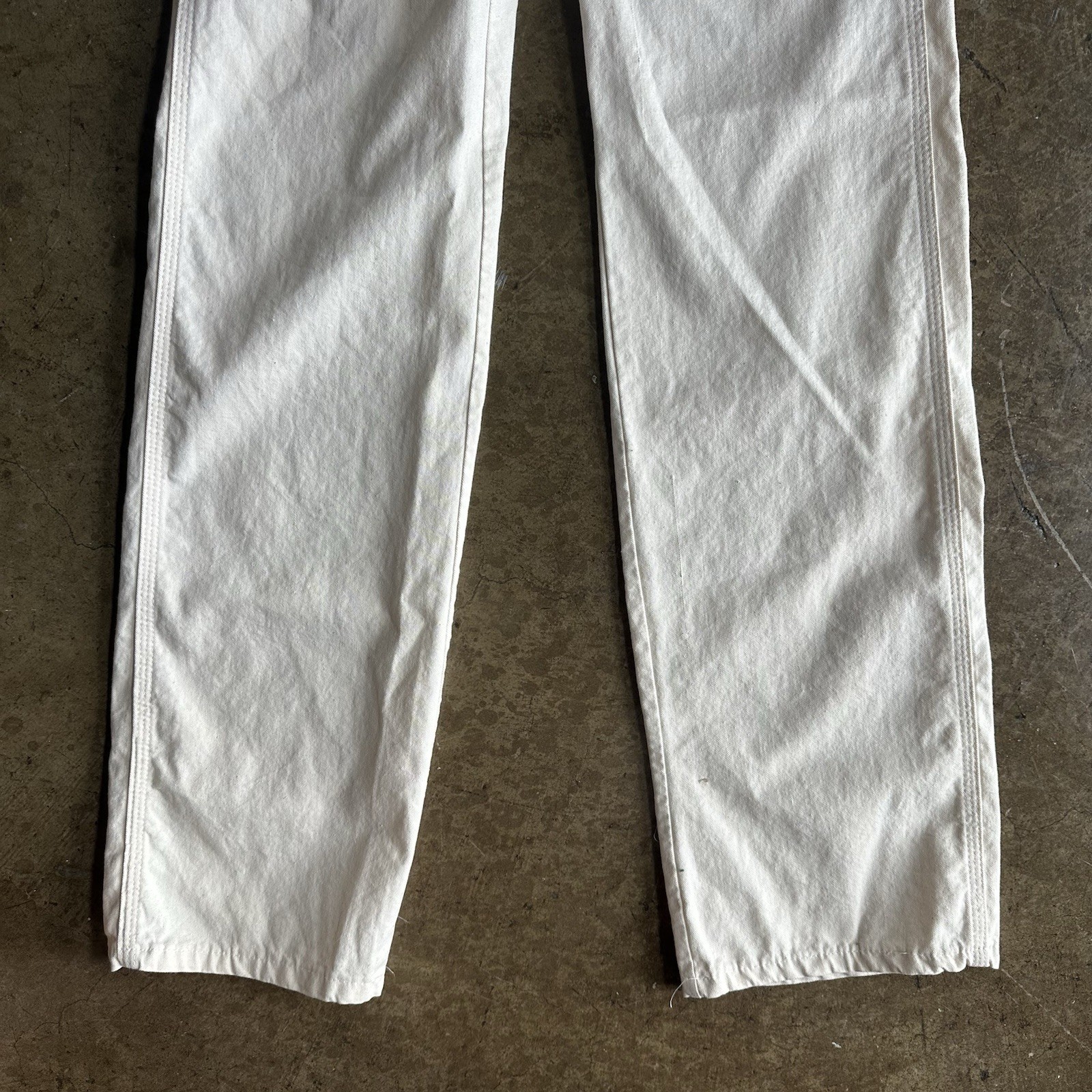 как выглядит Vintage 80 s Dee Cee Cotton Canvas White Carpenter Pants Size 26x36 фото