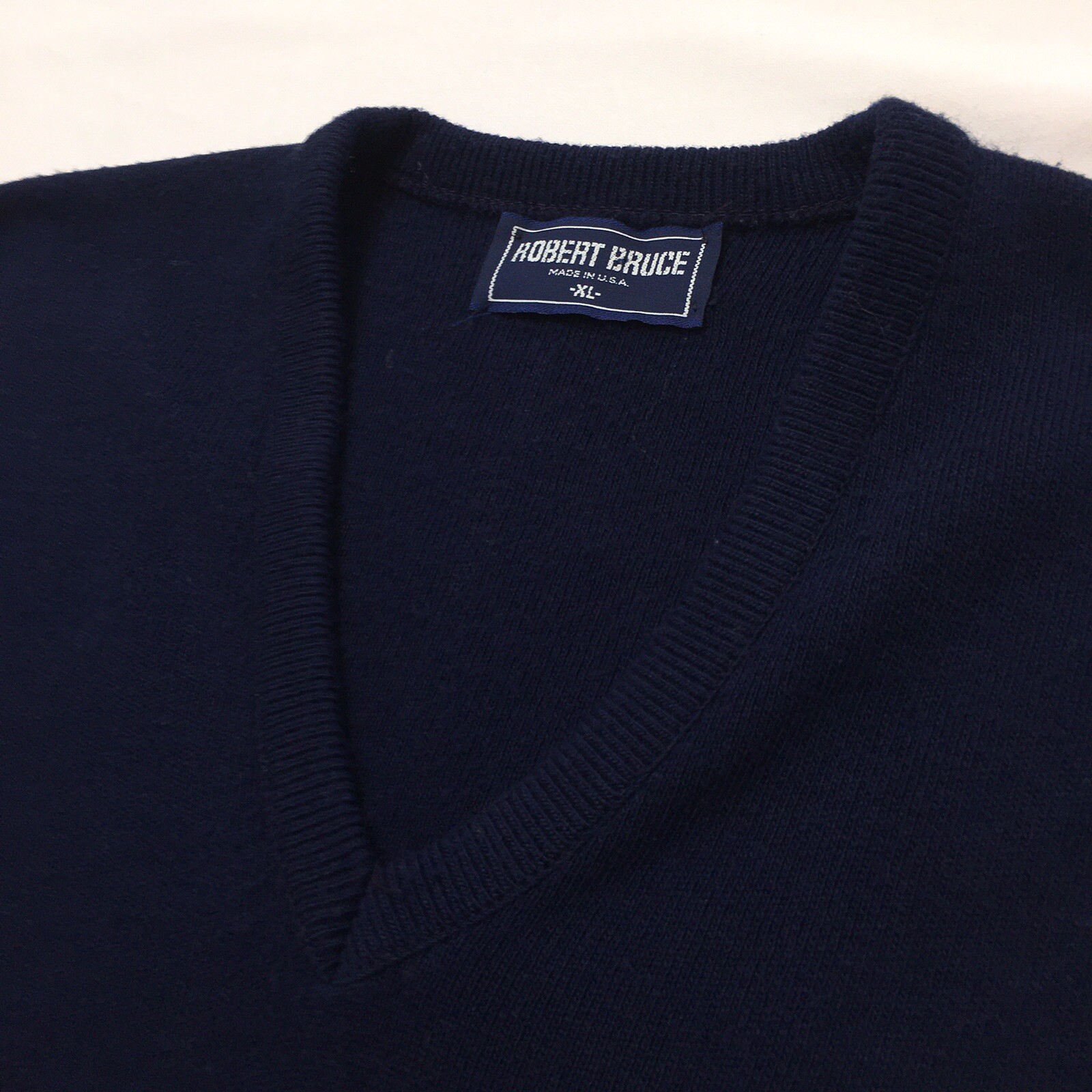 Vintage ROBERT BRUCE Sweater Men XL Navy Blue Wool V Neck USA Union Made