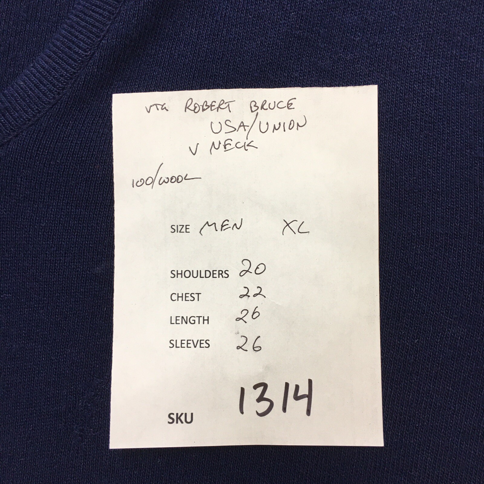 как выглядит Vintage ROBERT BRUCE Sweater Men XL Navy Blue Wool V Neck USA Union Made фото