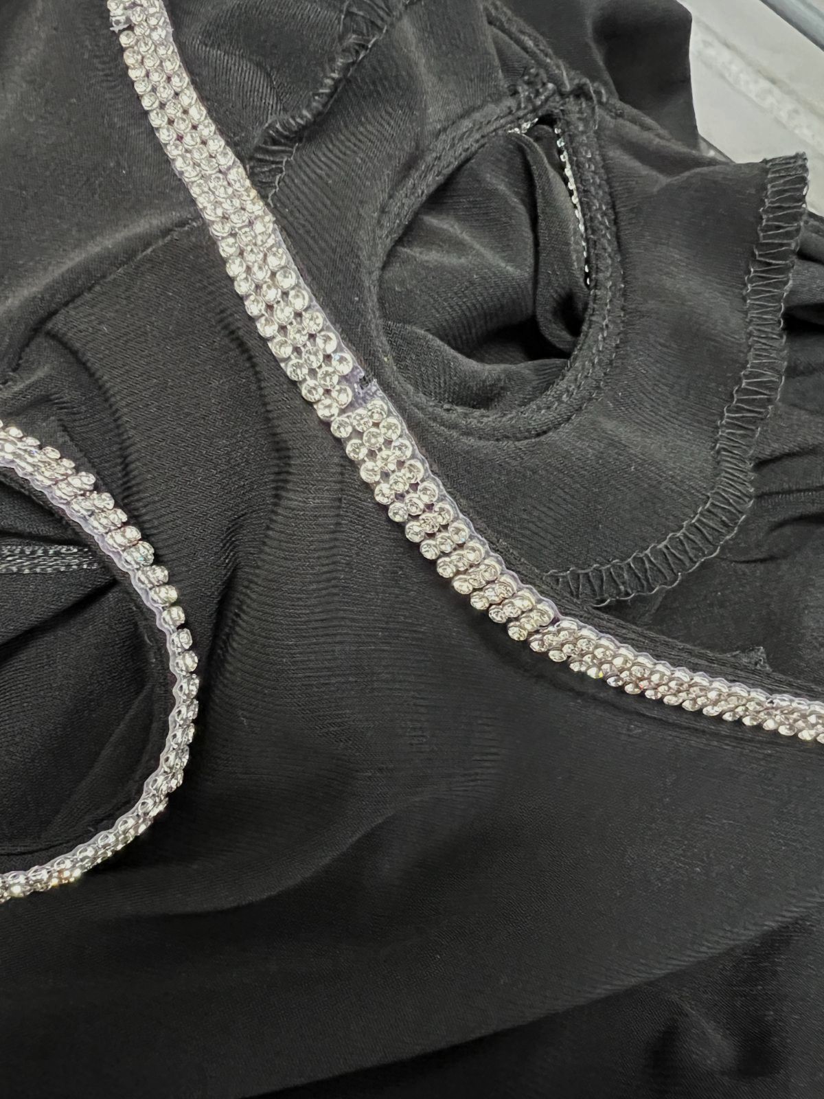как выглядит MSK Womens Black Rhinestone Trim Cold Shoulder Wide-Leg Jumpsuit Sz M фото