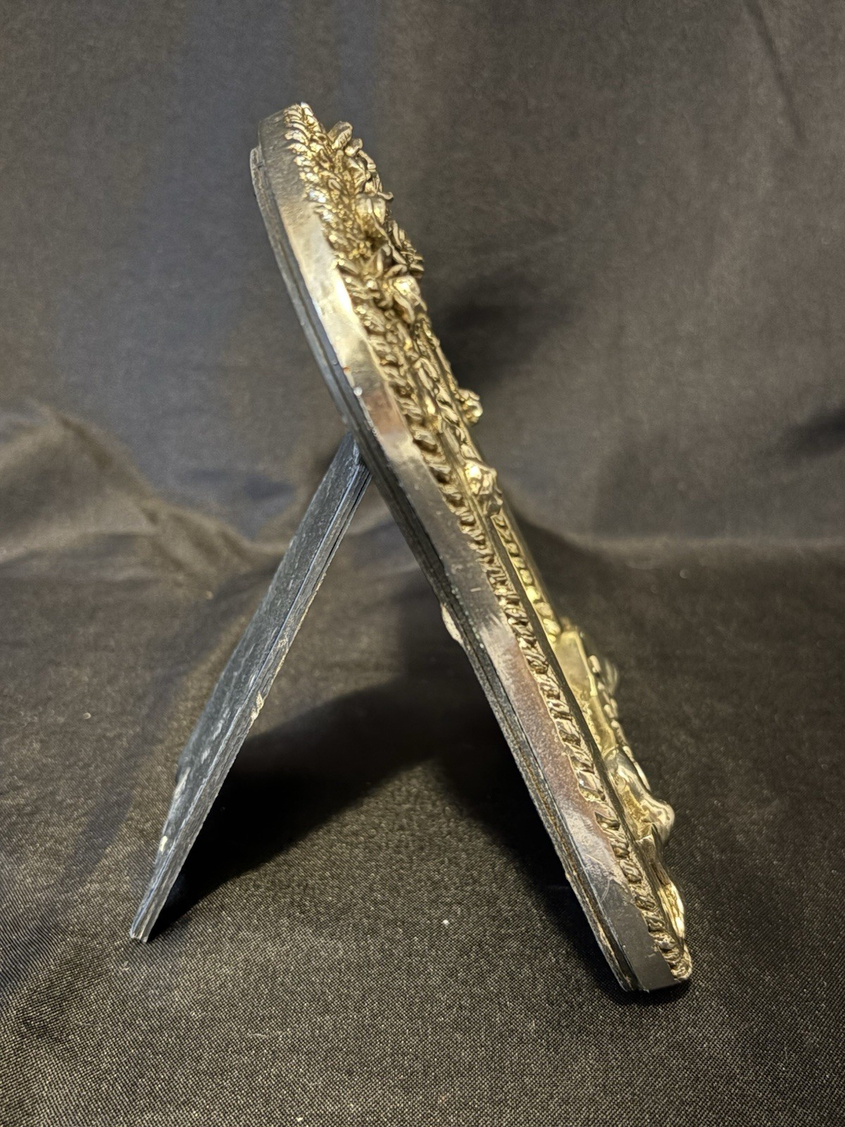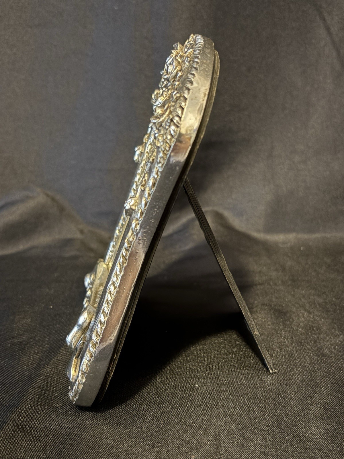 Silver Tone Baby Picture Frame Our Baby 3D Rose For 3.5 x5 Photo Freestandin