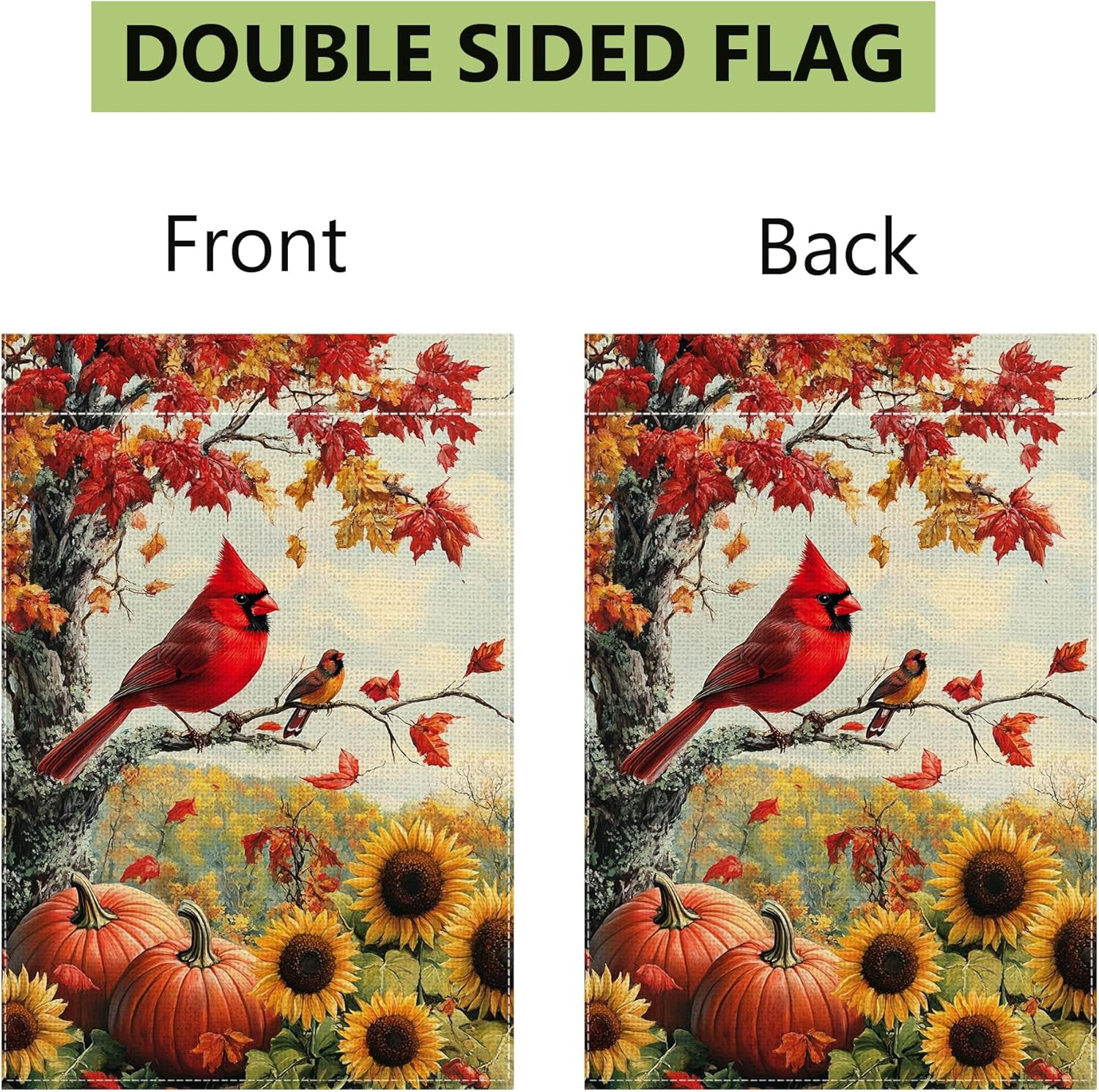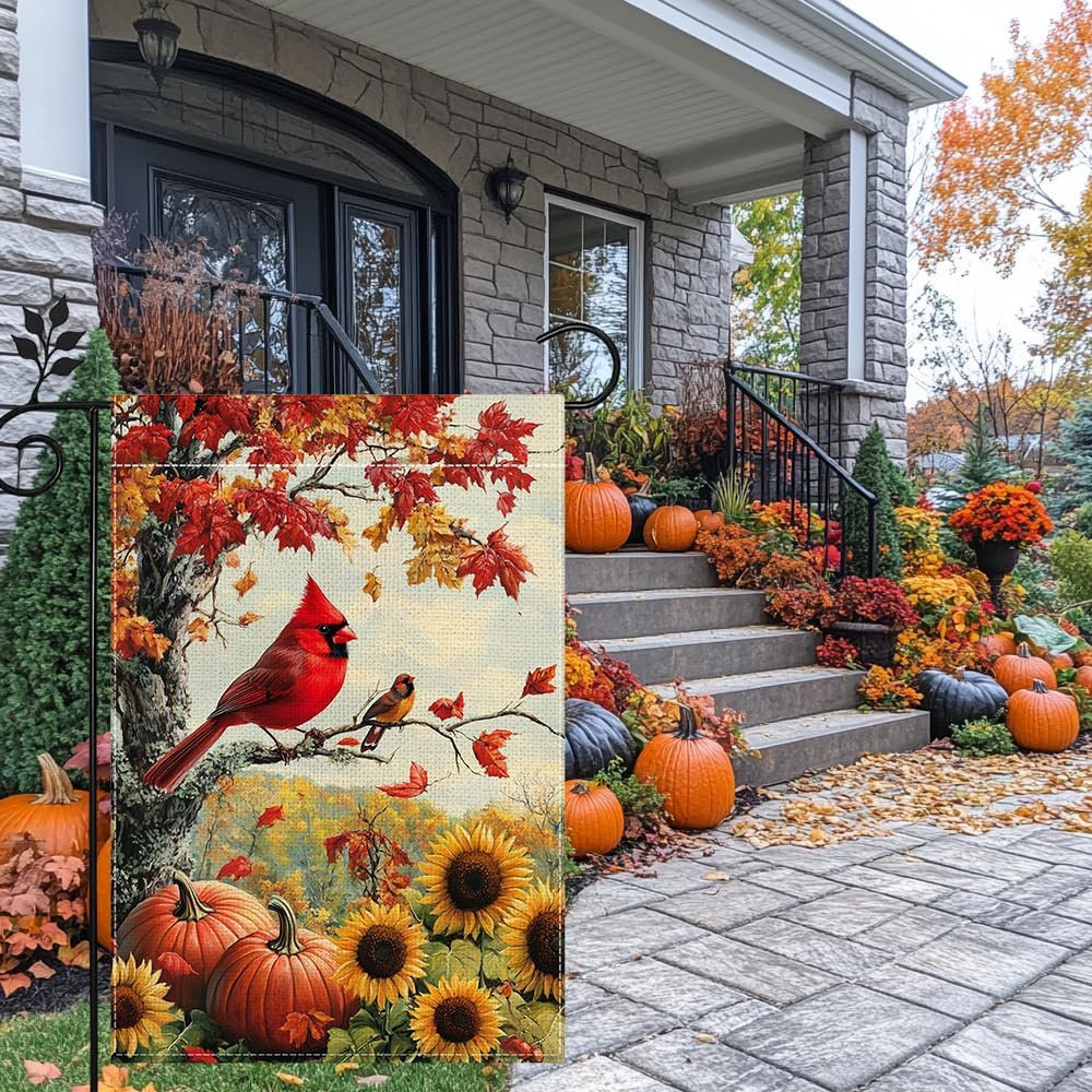 Fall Cardinal Red Pumpkin Garden Flag for outside 12X18 Inch Double Sided Burla