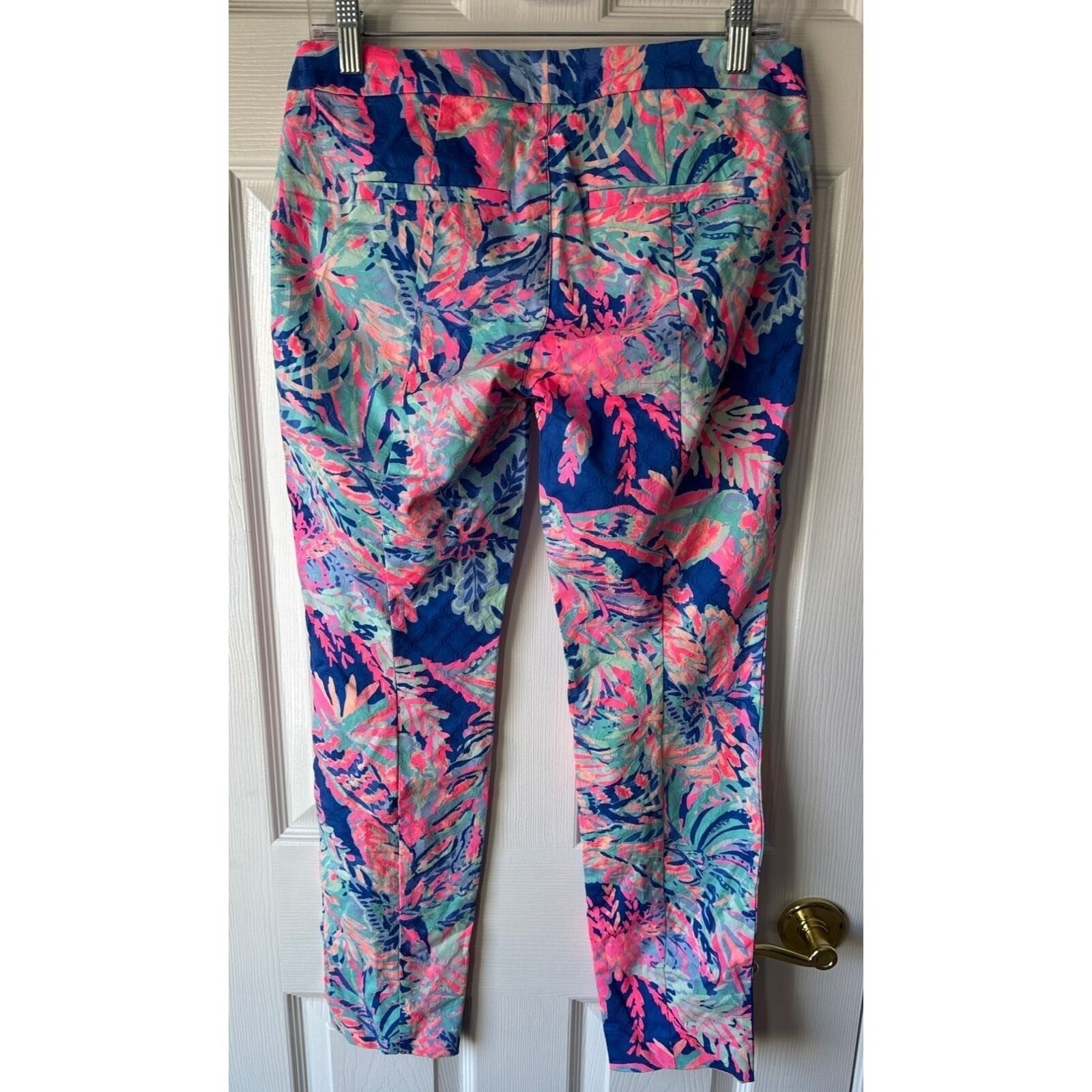 как выглядит Lilly Pulitzer Pants 4 Kelly Skinny Ankle Textured Stretch Back Seam Tropical фото