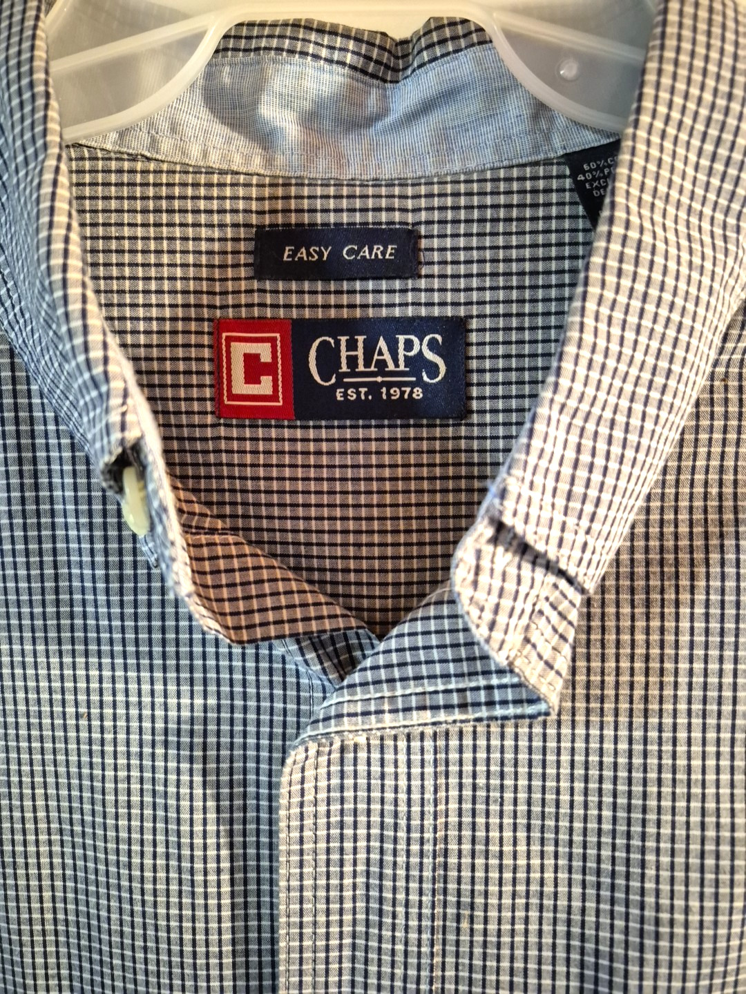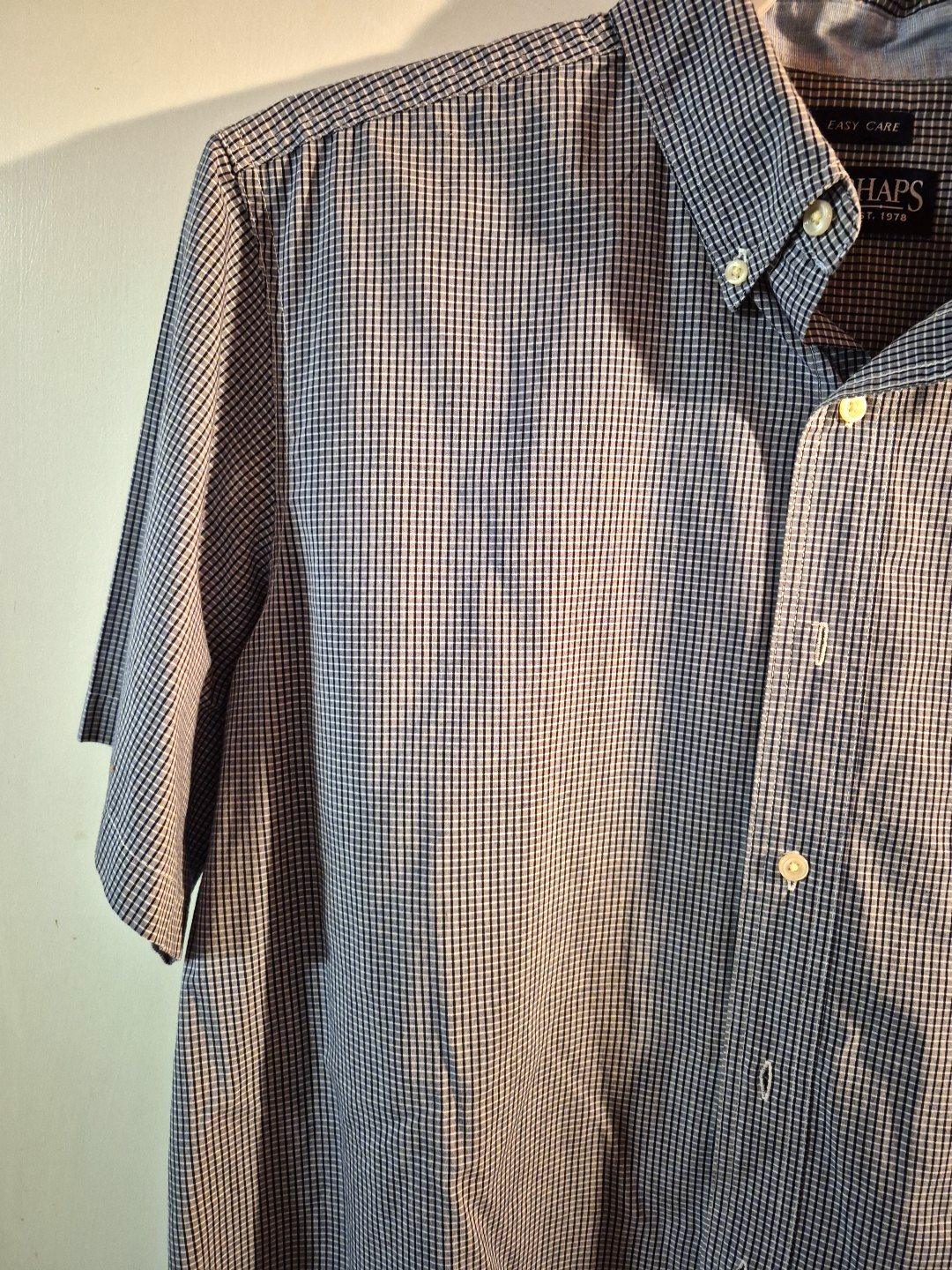 как выглядит CHAPS Easy Care Short Sleeve Button Shirt Mens Size XL Gray Black Plaid фото