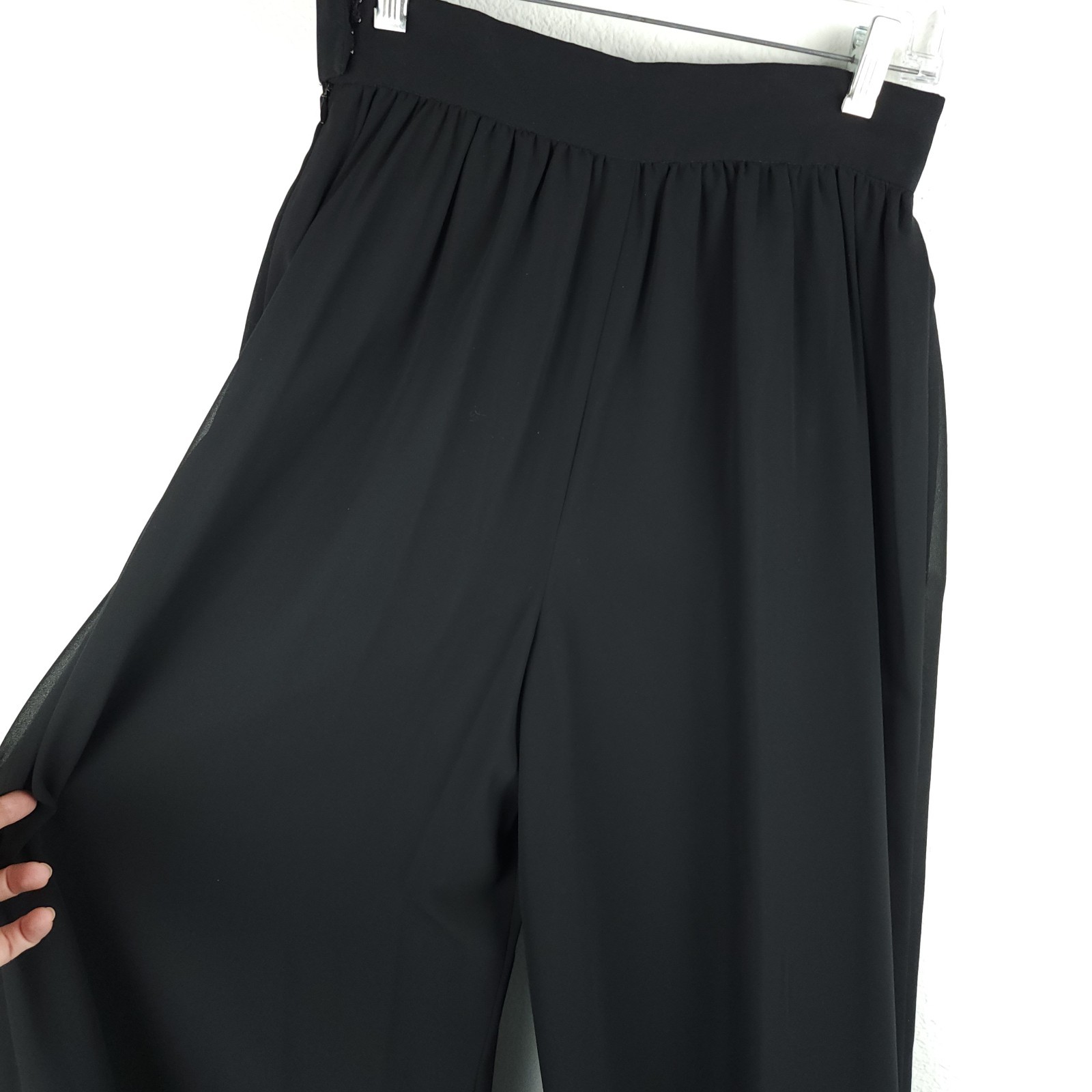 как выглядит Vintage 80s Wide Leg Palazzo Pants Black Heigh Waist Chiffon Overlay Lined M 10 фото