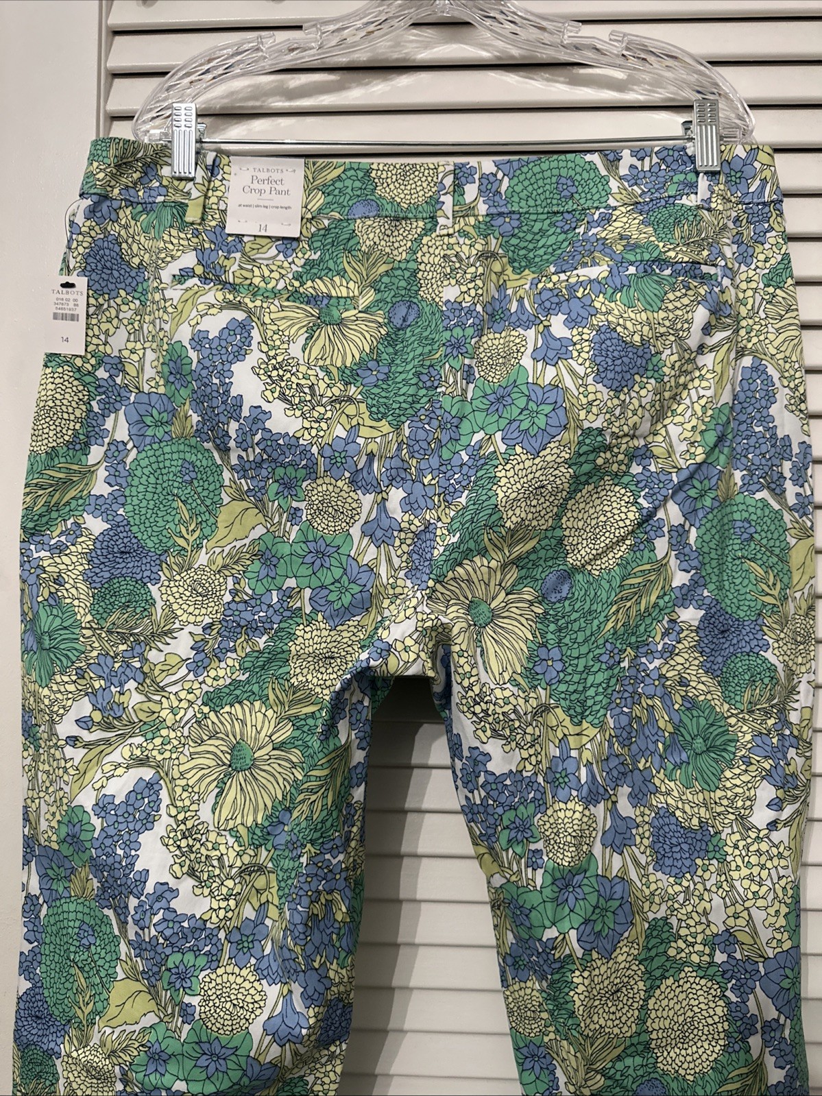 NWT TALBOTS Women s PERFECT CROP PANTS Sz14 Colorful Floral Flat Front Stretch
