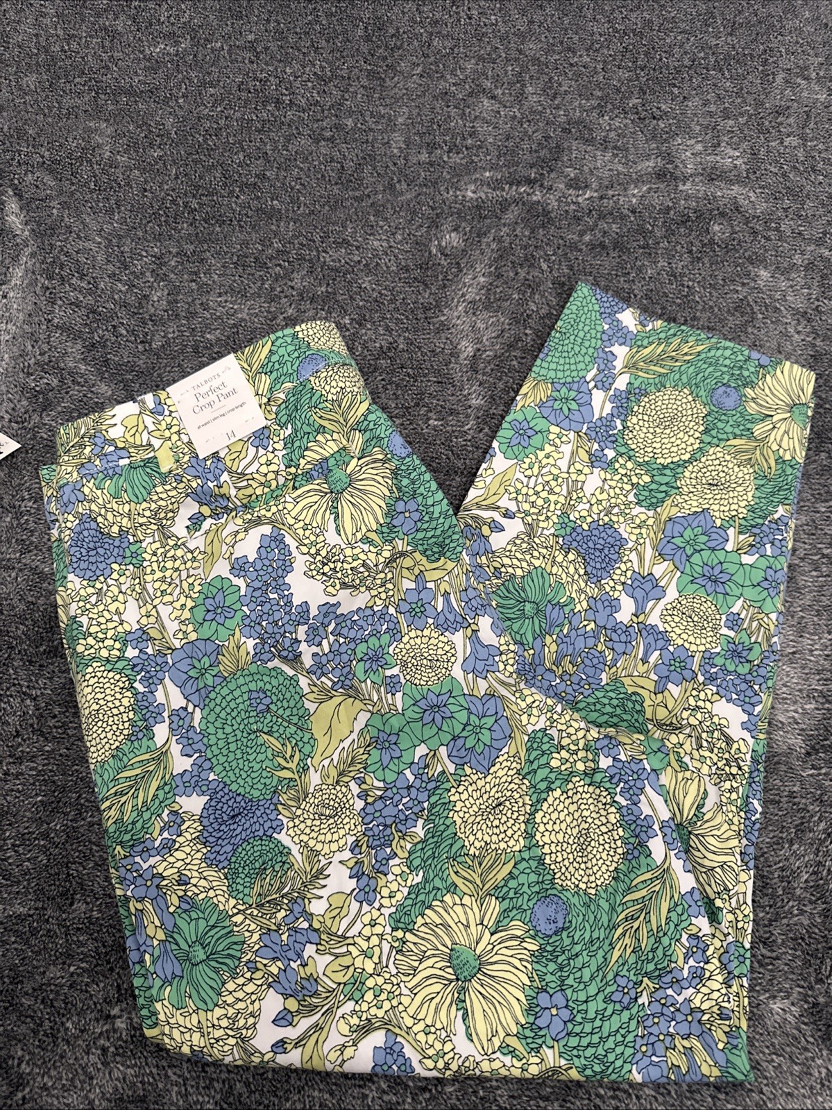 как выглядит NWT TALBOTS Women s PERFECT CROP PANTS Sz14 Colorful Floral Flat Front Stretch фото