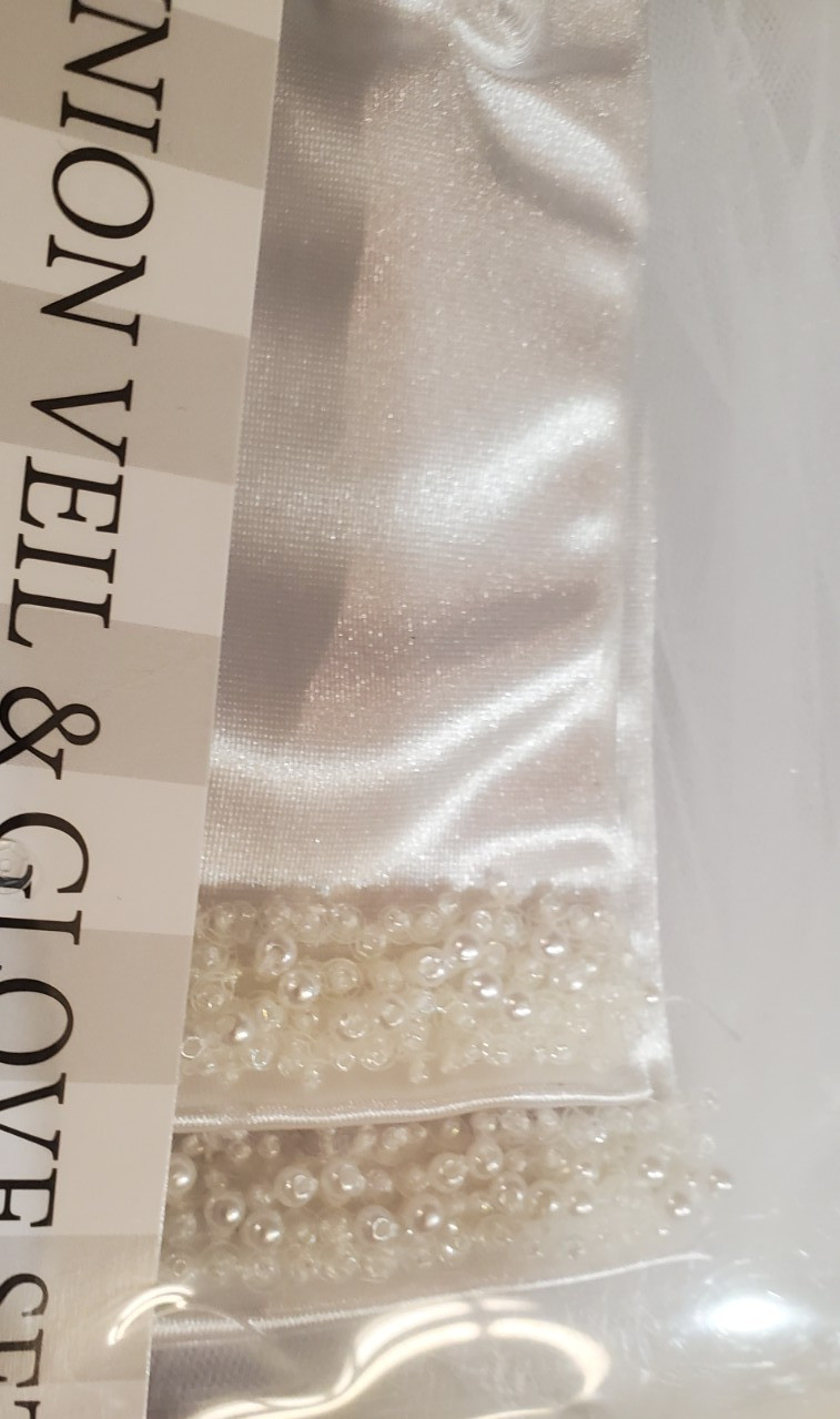 как выглядит Bonnie Jean Little Girls Beaded First Communion Headband Double Veil and Gloves фото