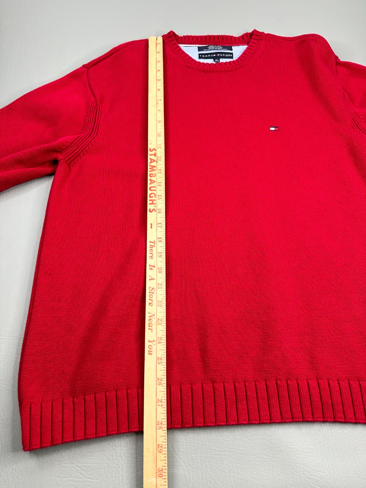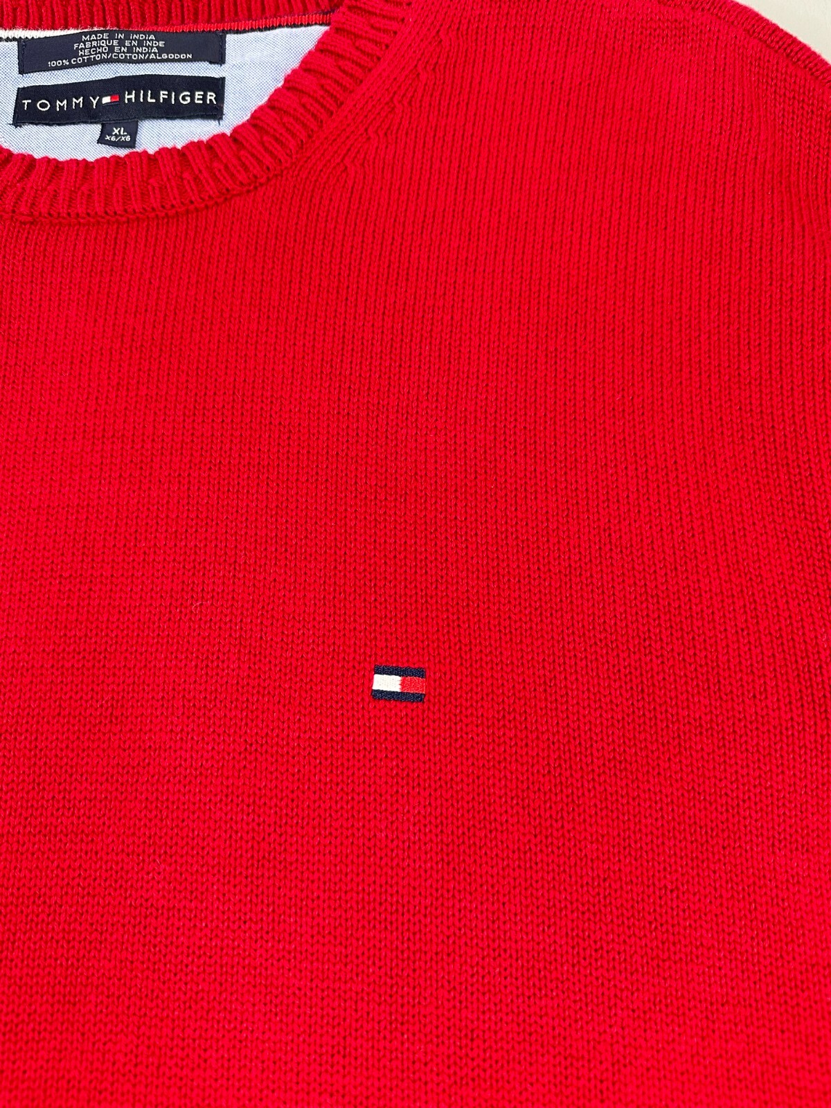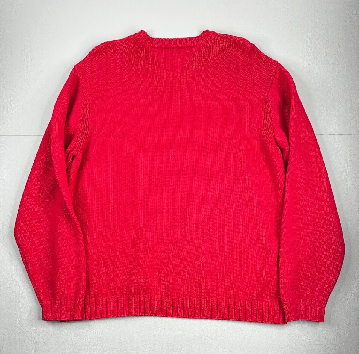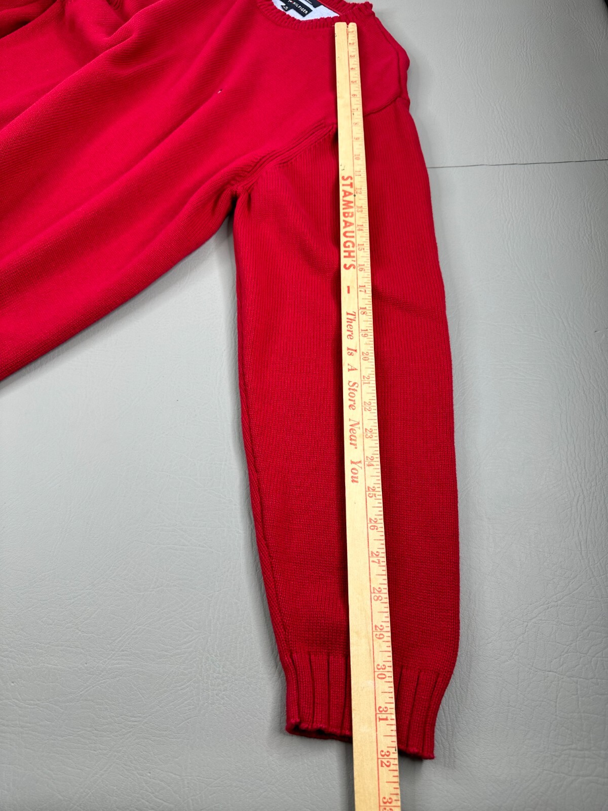 как выглядит Tommy Hilfiger Tight Knit Sweater Mens XL Red Classic Ribbed Crew Neck фото