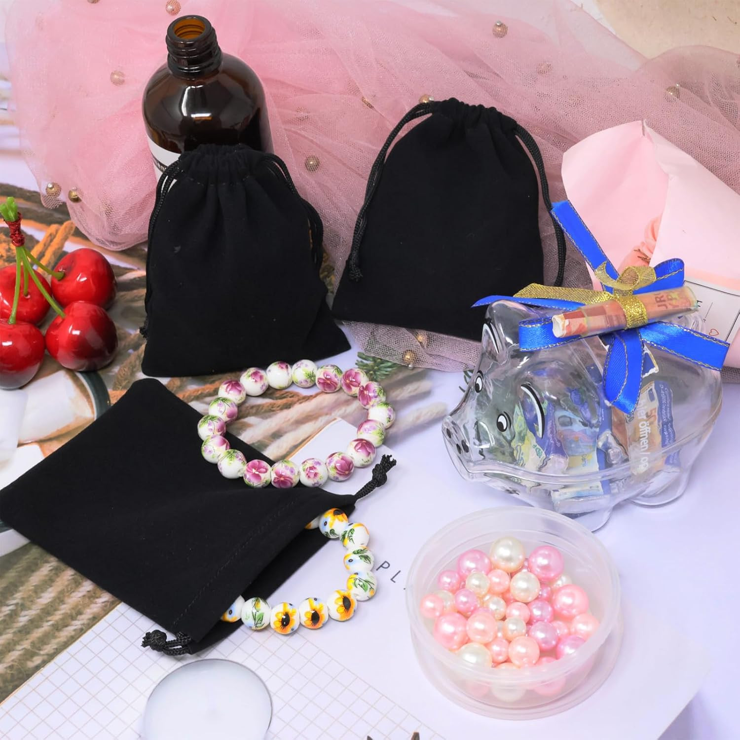 3X4 Inches Small Velvet Drawstring Pouches Black Velvet Cloth Bags Jewelry Bags