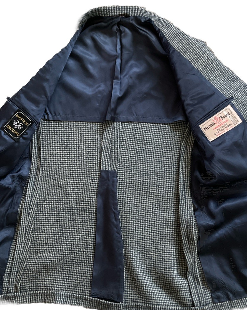 Vtg Harris Tweed Scottish Wool Blazer Sport Coat Jacket 42R Blue Gray Ram s Head