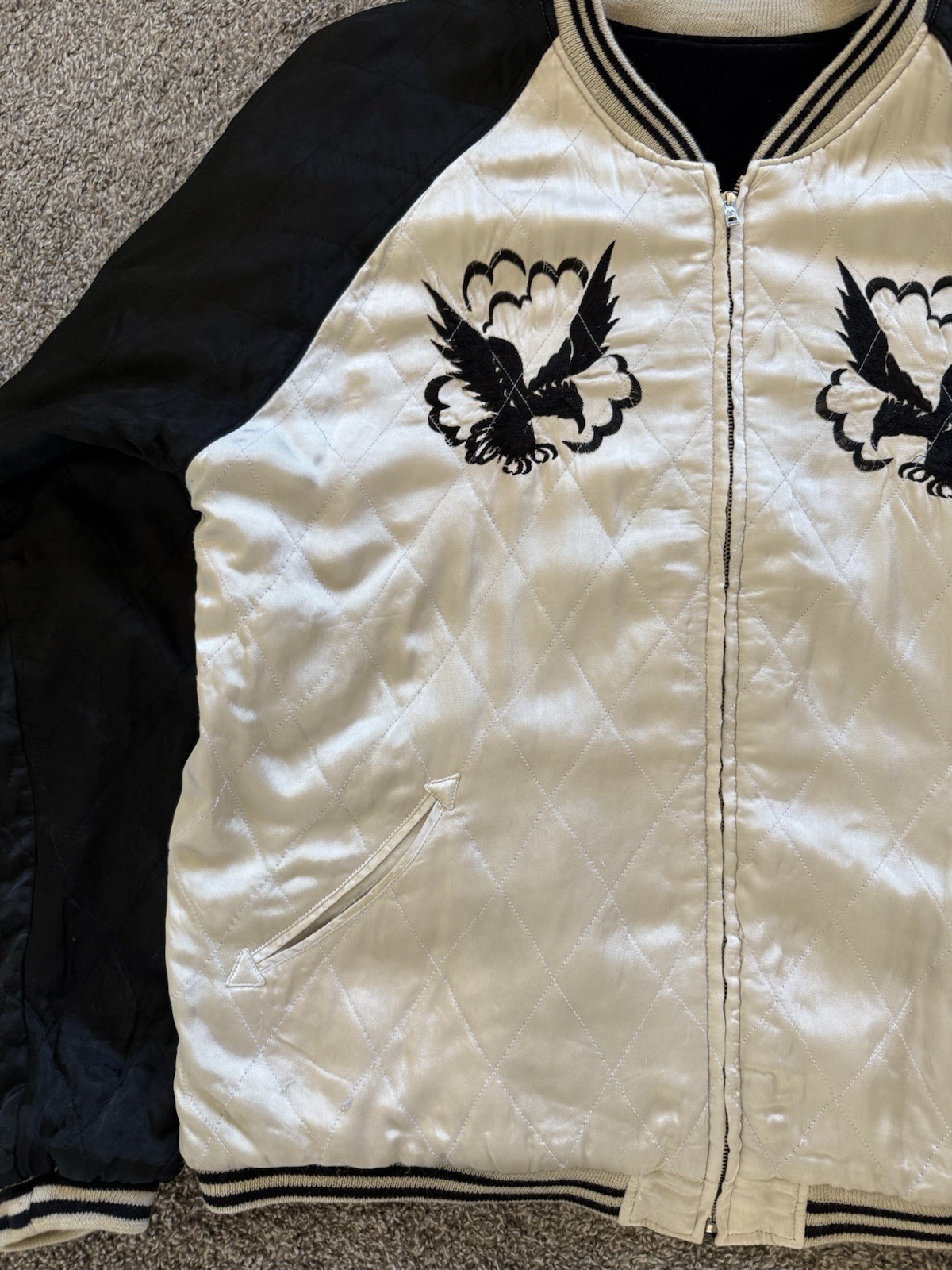 как выглядит Vintage 90s Black Dragon Velvet Reversible Sukajan Souvenir Jacket Size XL Eagle фото