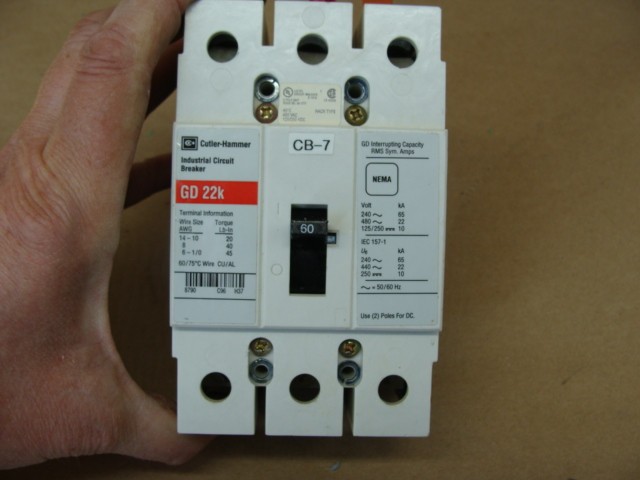 как выглядит CUTLER HAMMER CIRCUIT BREAKER GD 22K 60 AMP 480V 125/250VDC 3 POLE фото