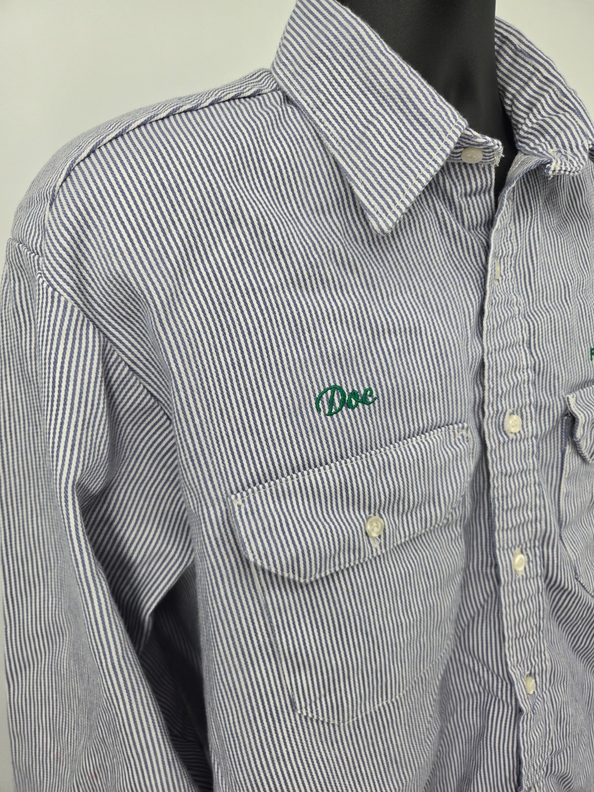 Bulwark Excel FR Large Shirt Blue Pinstripe Pocket 8.3 ATPV Flame Resistant Fire
