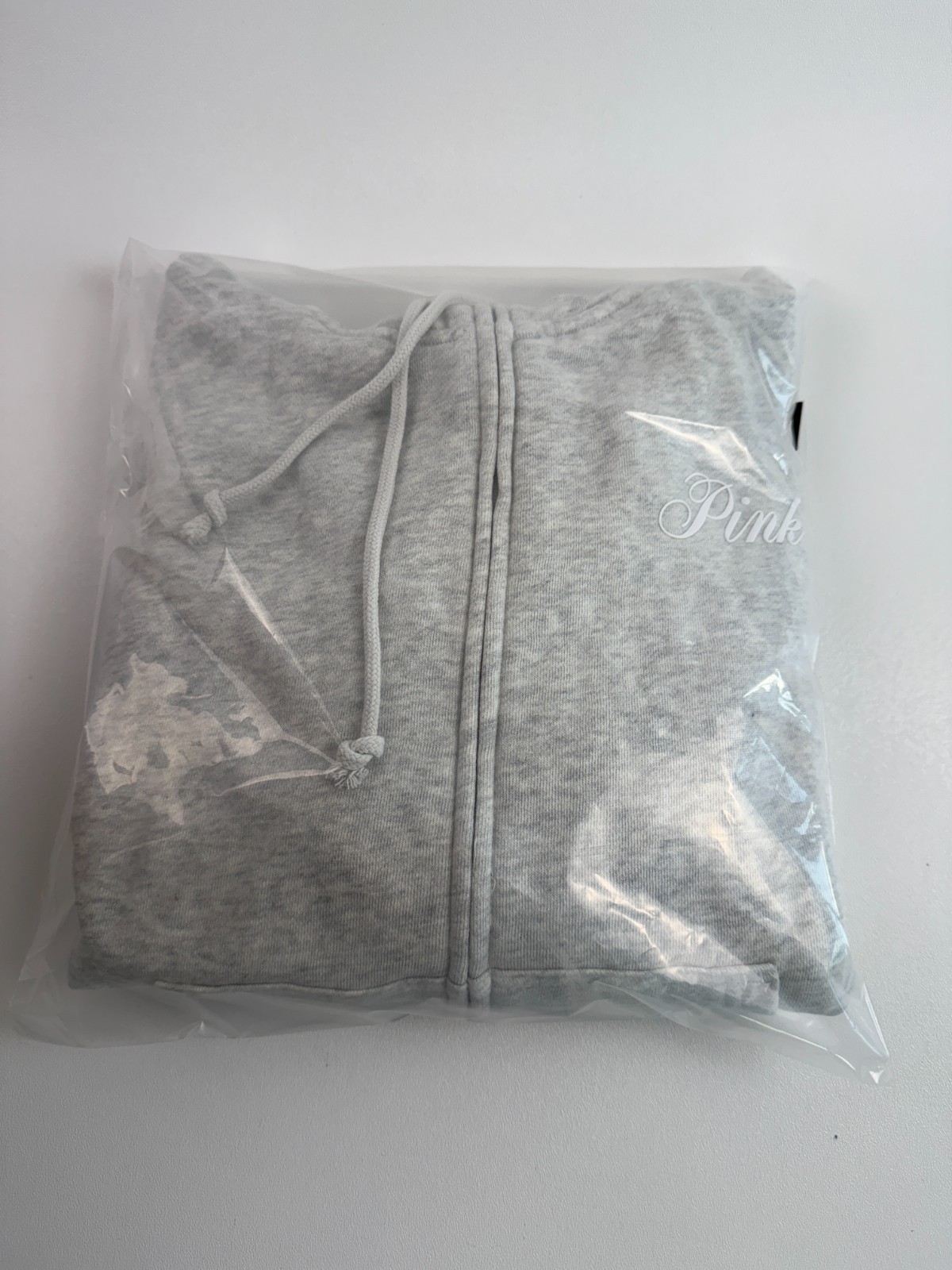 Victoria's Secret PINK Long Sleeve Full Zip Hoodie Sweatshirt Gray M NWT