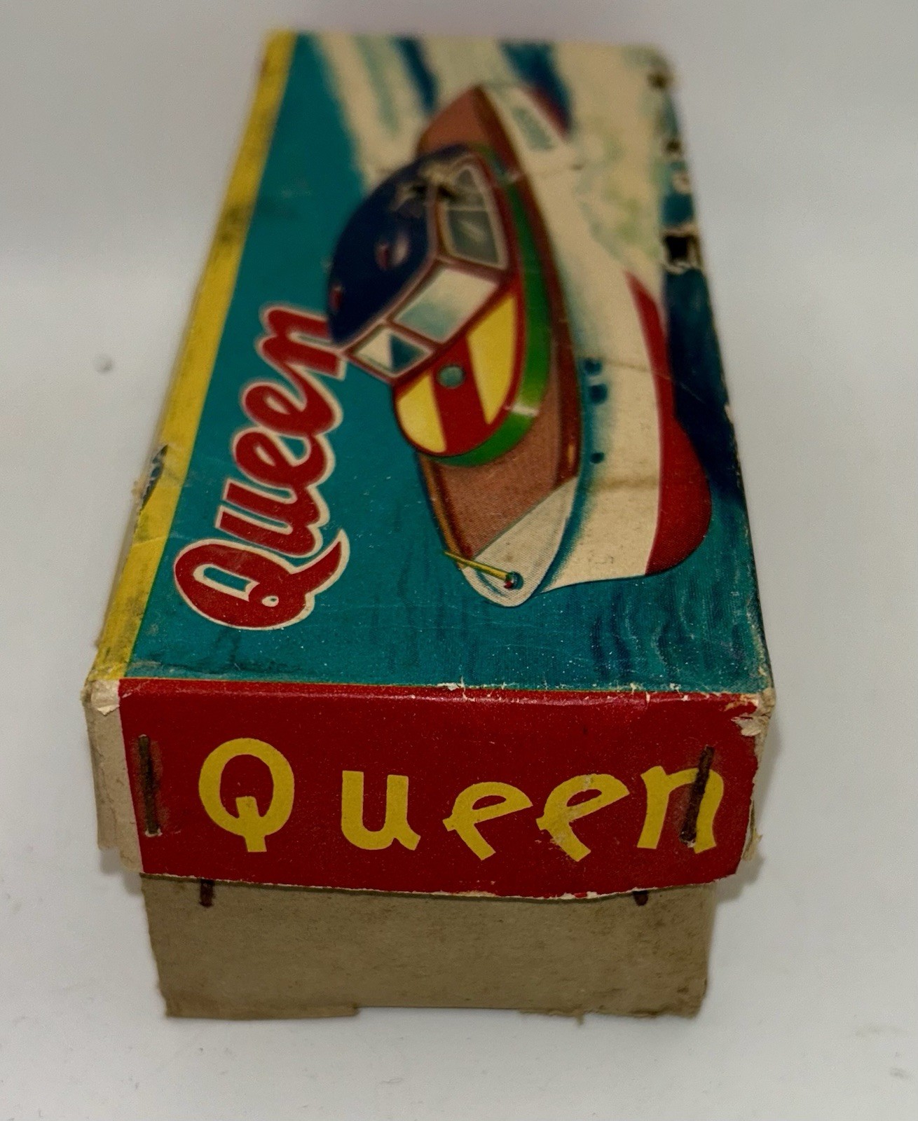 1950's ALPS Tin Made In Japan Queen Wind Up Speed Boat Toy Original Box Works
