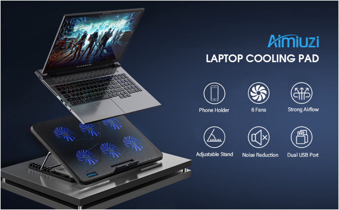 Laptop Cooling Pad Phone Holder Anti-Slip Baffle 6-Fan Gaming Cooler Fits 12-17
