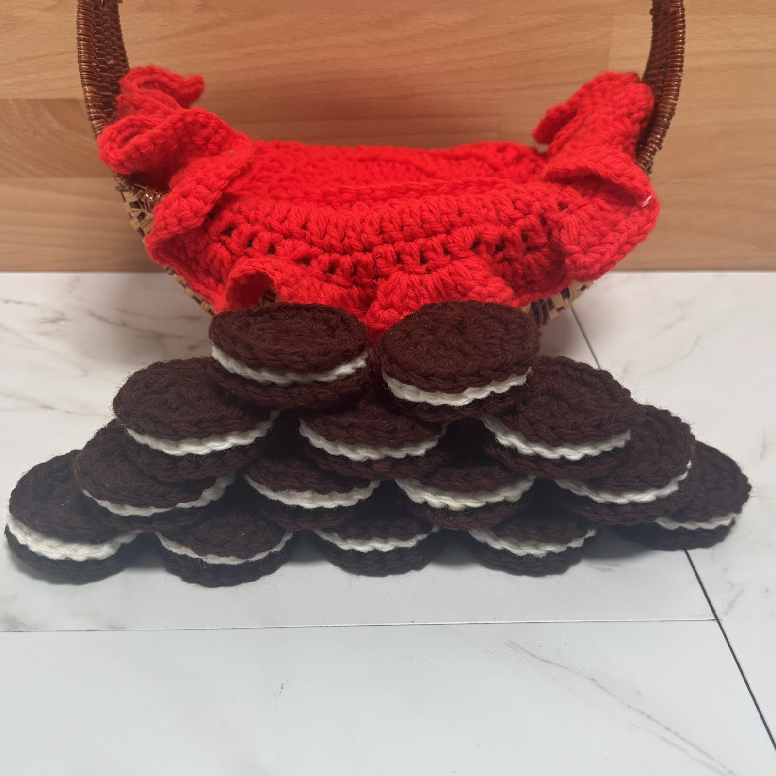 как выглядит 14 Handmade Crochet Oreo Sandwich Cookies Play In A Basket фото