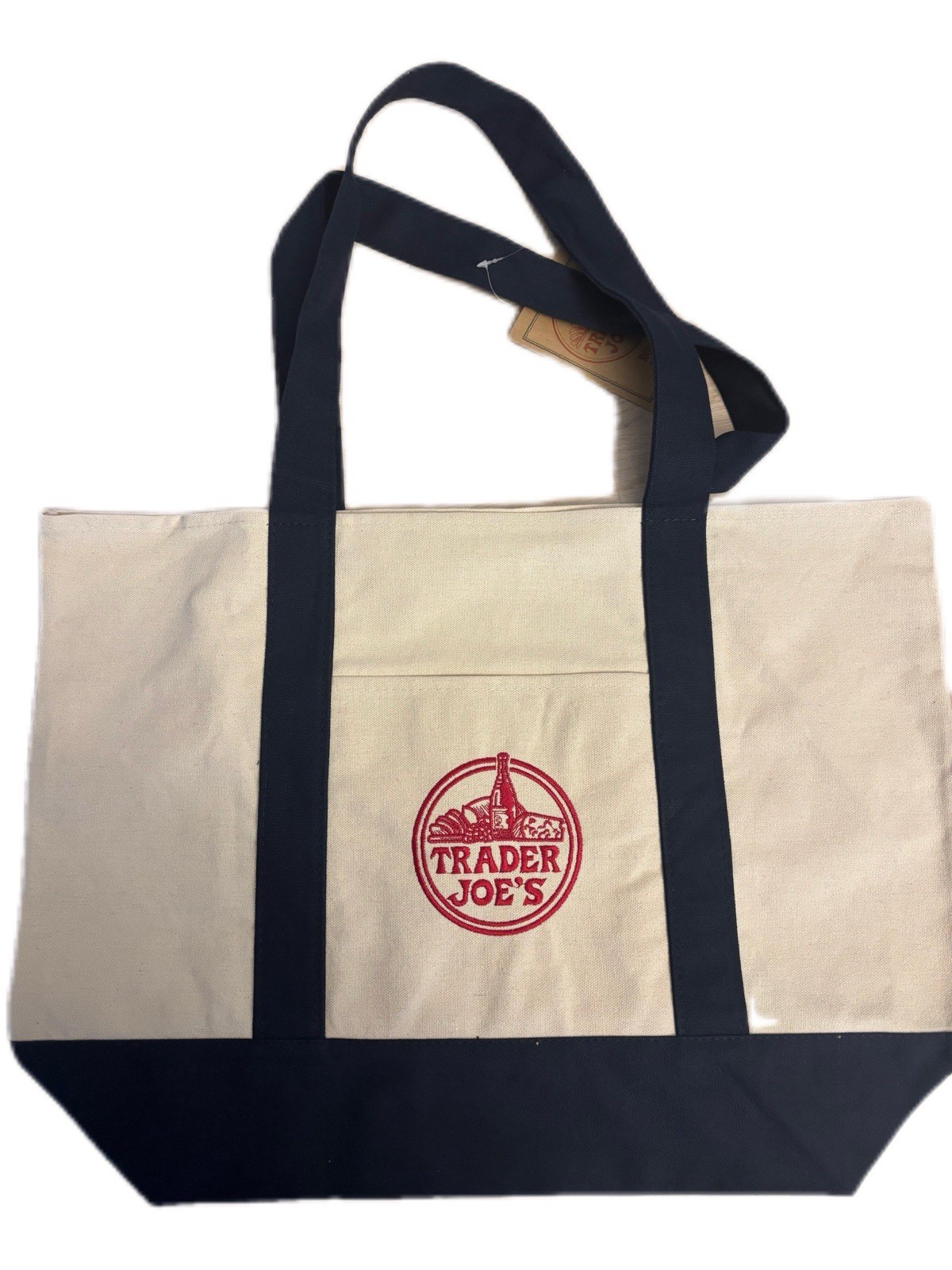 как выглядит 4 Bags Trader Joes Reusable Canvas Large Tote Bag Heavy Cotton Blue White фото