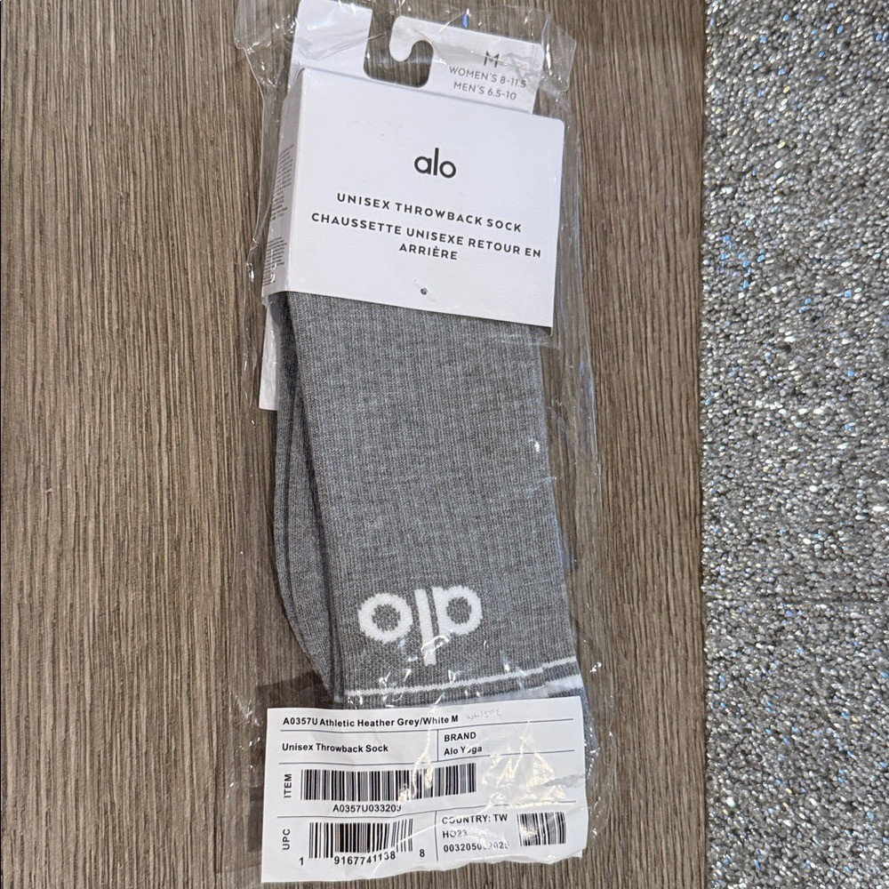как выглядит ALO Unisex Throwback Sock - Athletic Heather Grey WHITE NWT фото