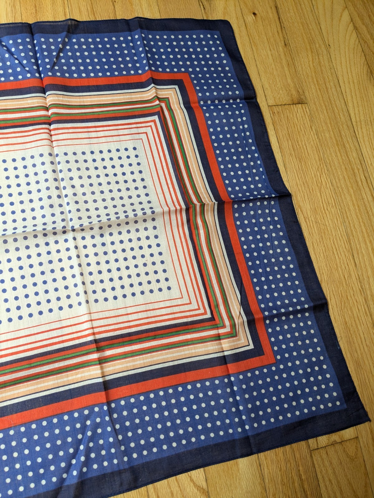 vintage 70s hair neck scarf polka dot stripe blue orange green retro 21 square