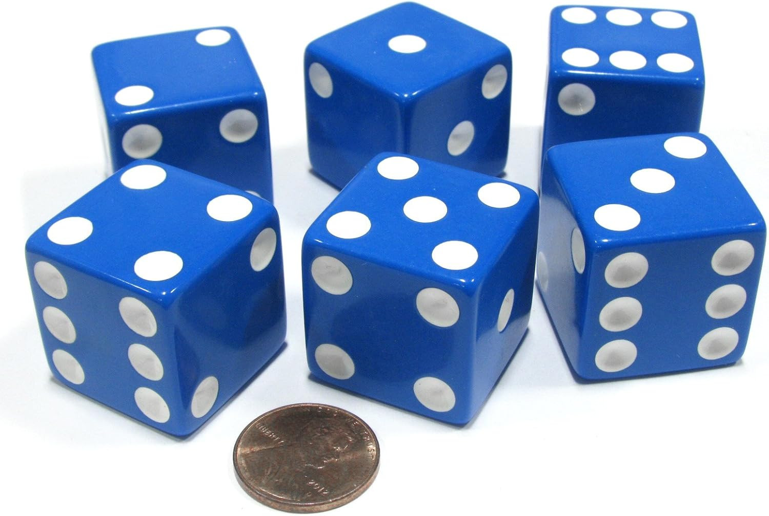 как выглядит Set of 6 D6 25Mm Large Opaque Jumbo Dice - Blue with White Pip фото