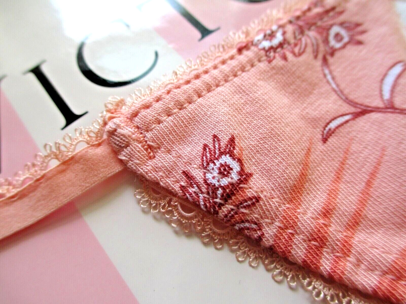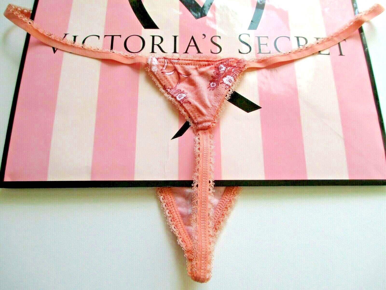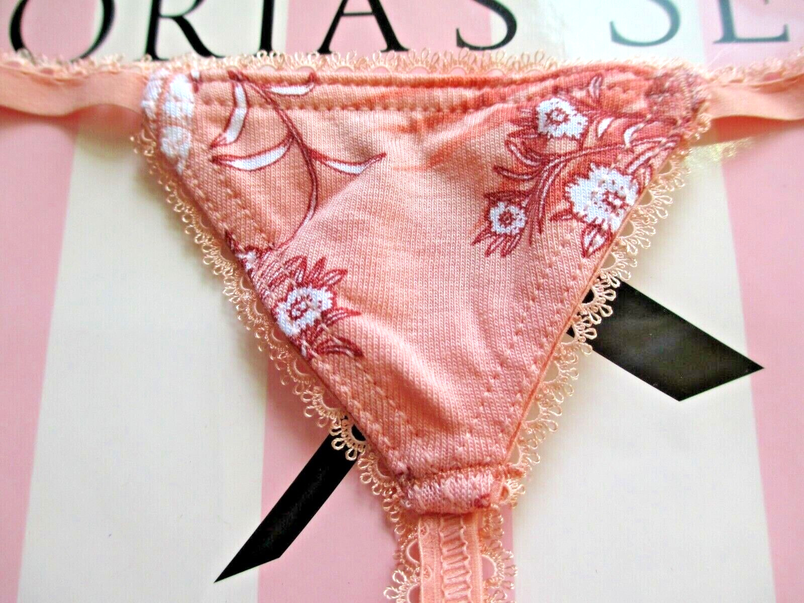 как выглядит VICTORIAS SECRET Cotton V-String Thong Panty VS Orange Floral Picot Trim S M фото