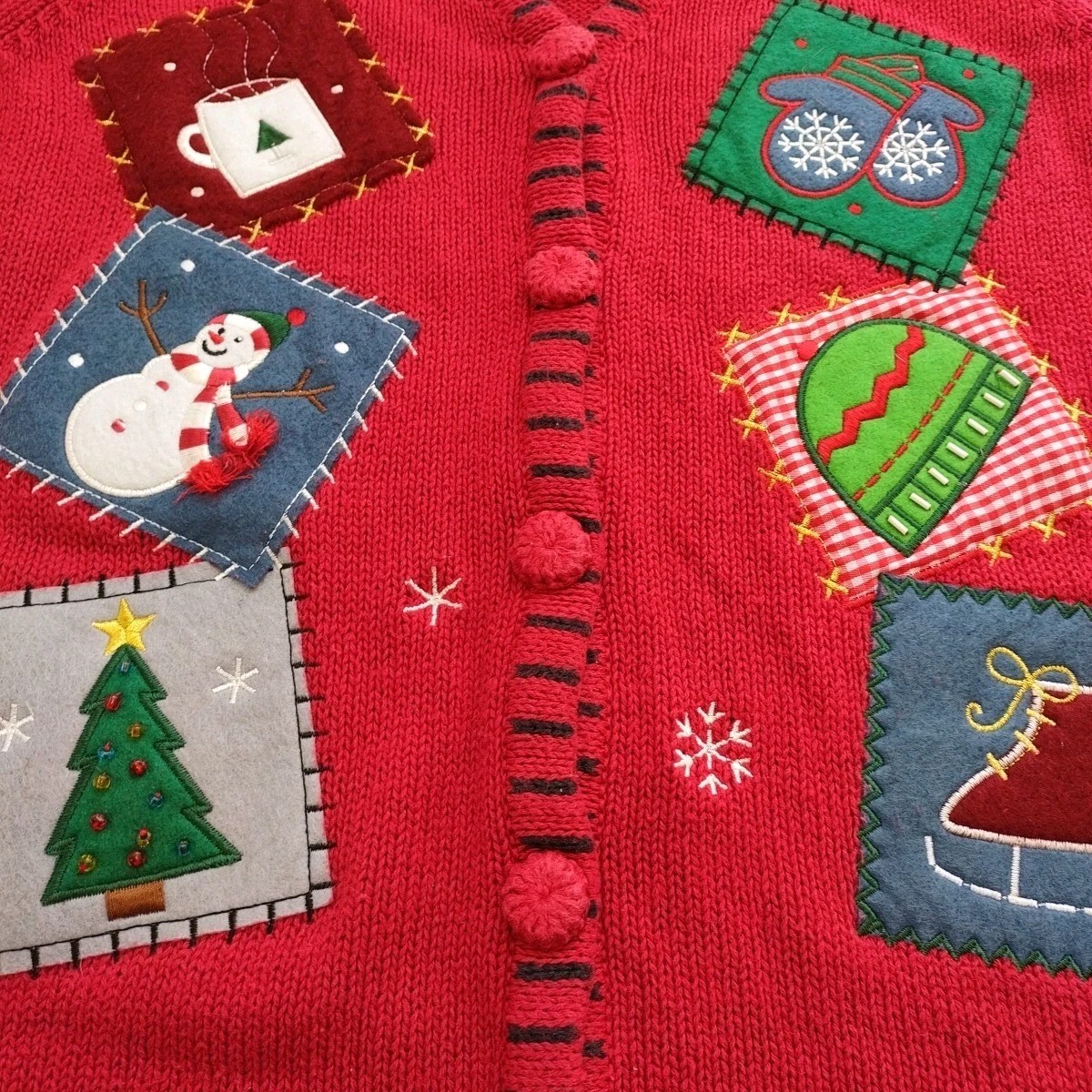 как выглядит VTG Holiday Editions Ugly Christmas Sweater Vest Cardigan Snowman Size Large фото