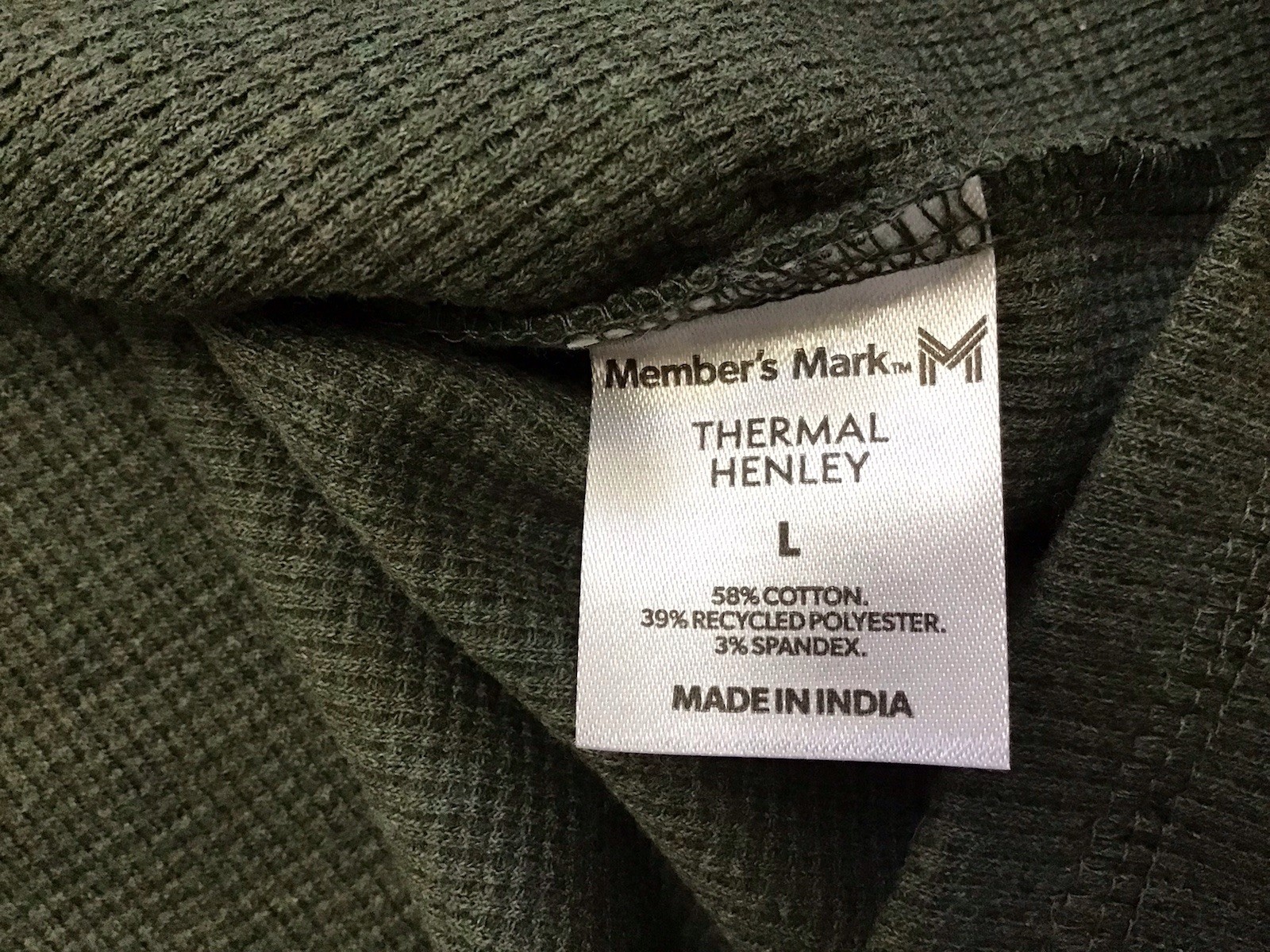 New Member's Mark Large Olive Men's Soft Cotton Waffle Knit Thermal Henley