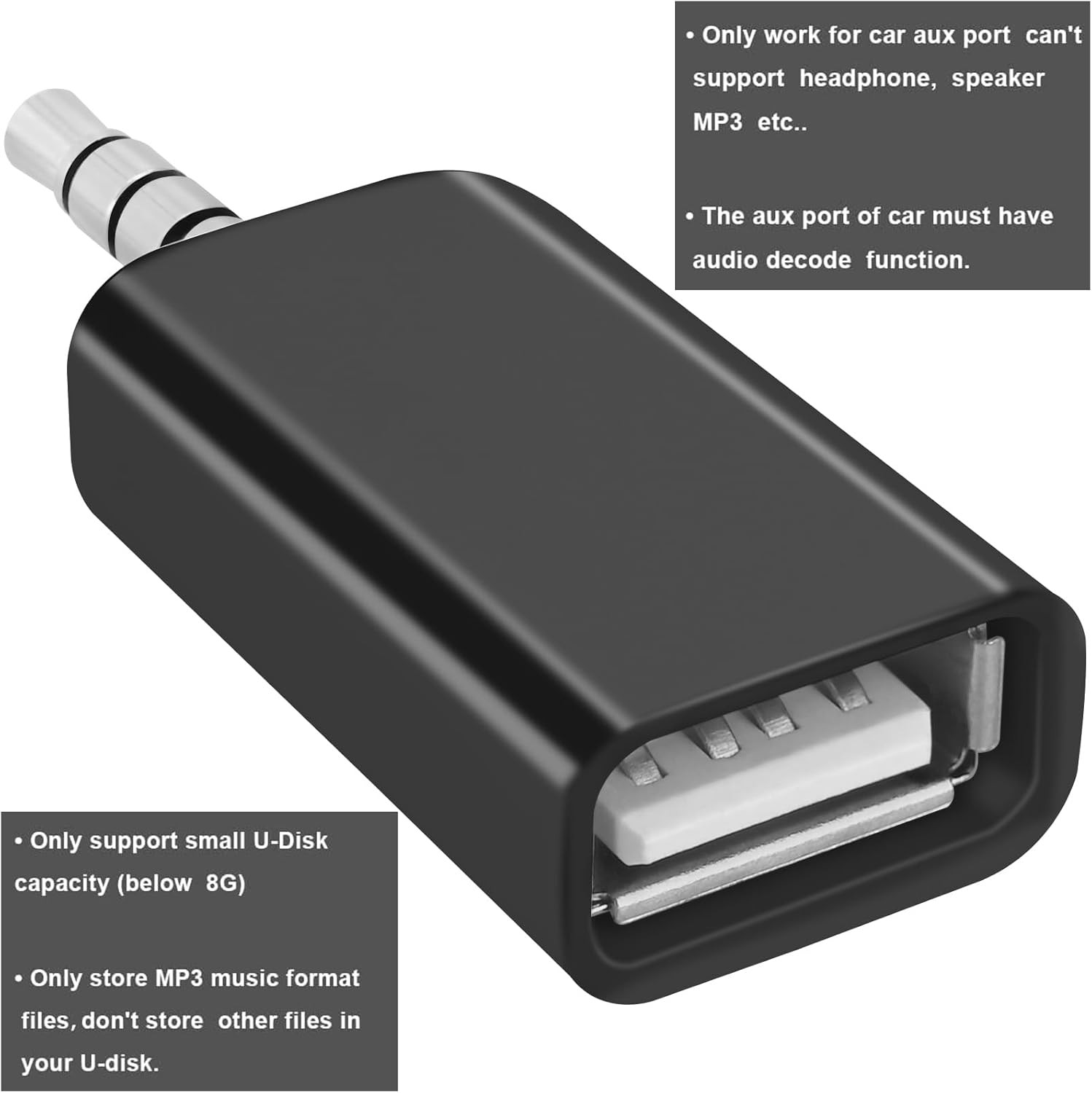 2 Pack AUX to USB Adapter, A Female 3.5mm Male Audio Converter Black