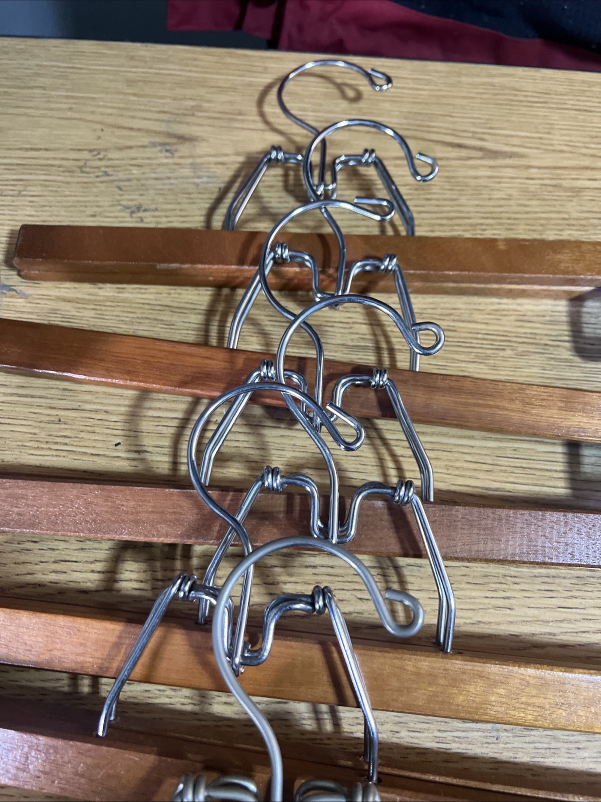 как выглядит MIXED LOT OF 4 OLD VINTAGE WOODEN HANGERS FOR PANTS, SLACKS, SKIRTS фото