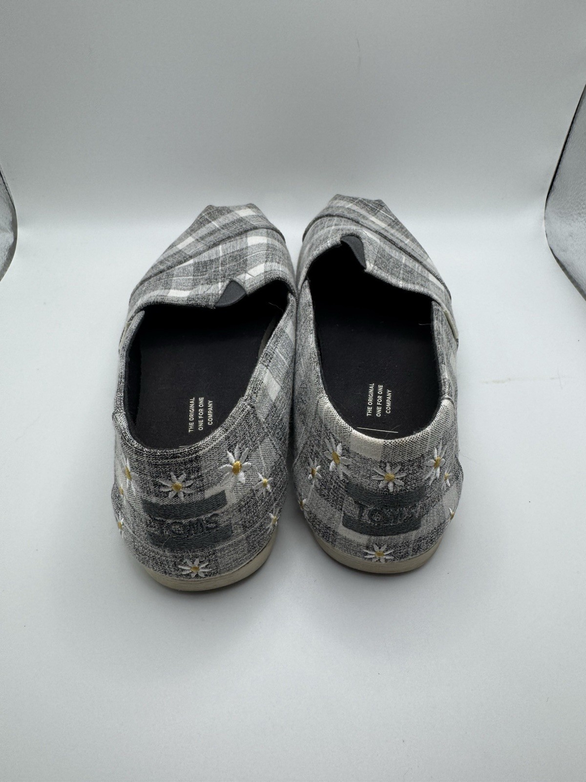 TOMS Gray White Check Sunflower Accent Alpargata Flat Slip On Shoe Size 8W