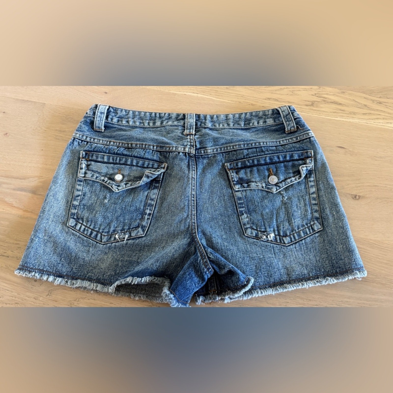 VTG Jeanology cut off distressed blue denim shorts size 16
