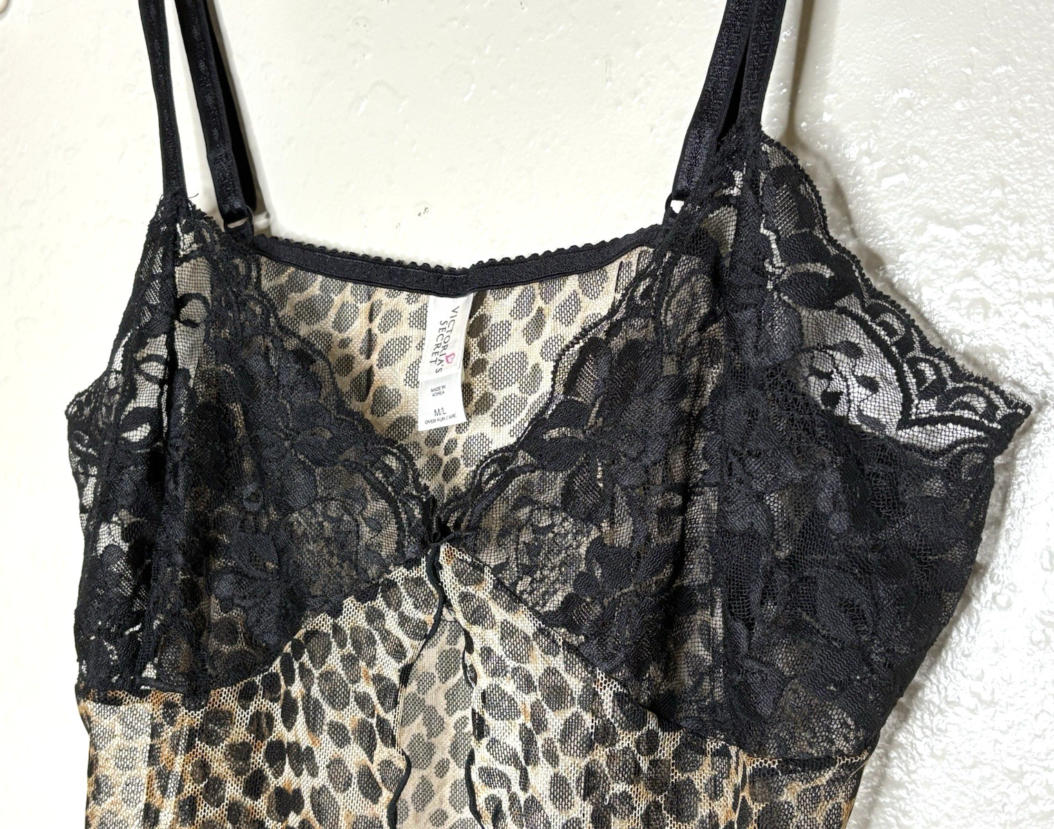 90s Victorias Secret M/L Leopard Print Babydoll Slip Sheer Lace Lingerie Vintage